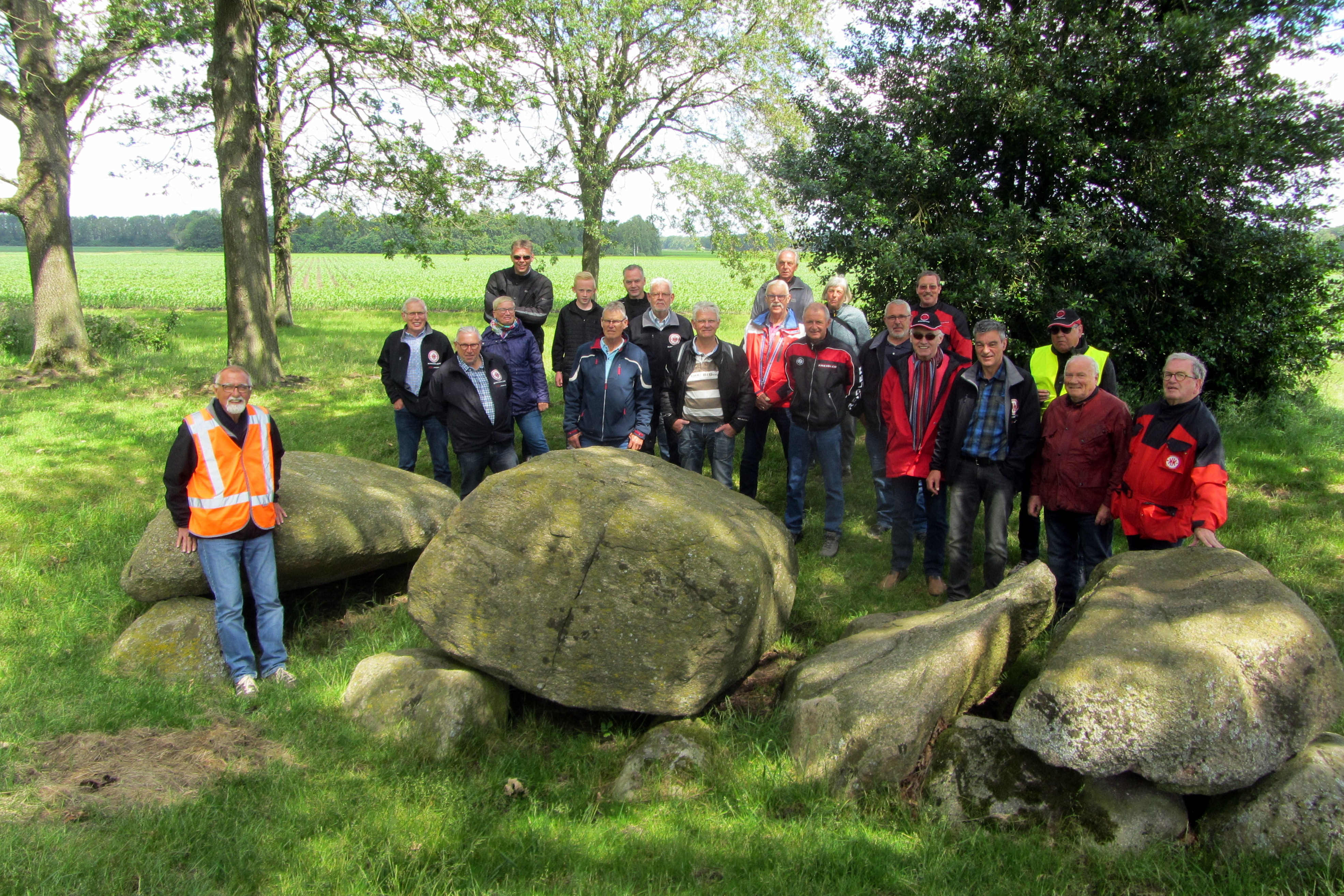 vertrokken via Westervelde, Norg en Zeijen (waar we een staatsiefoto hebben gemaakt bij een hunebed) Ubbena, Zeegse, Anloo, Gasteren en Anderen naar het lunchadres.