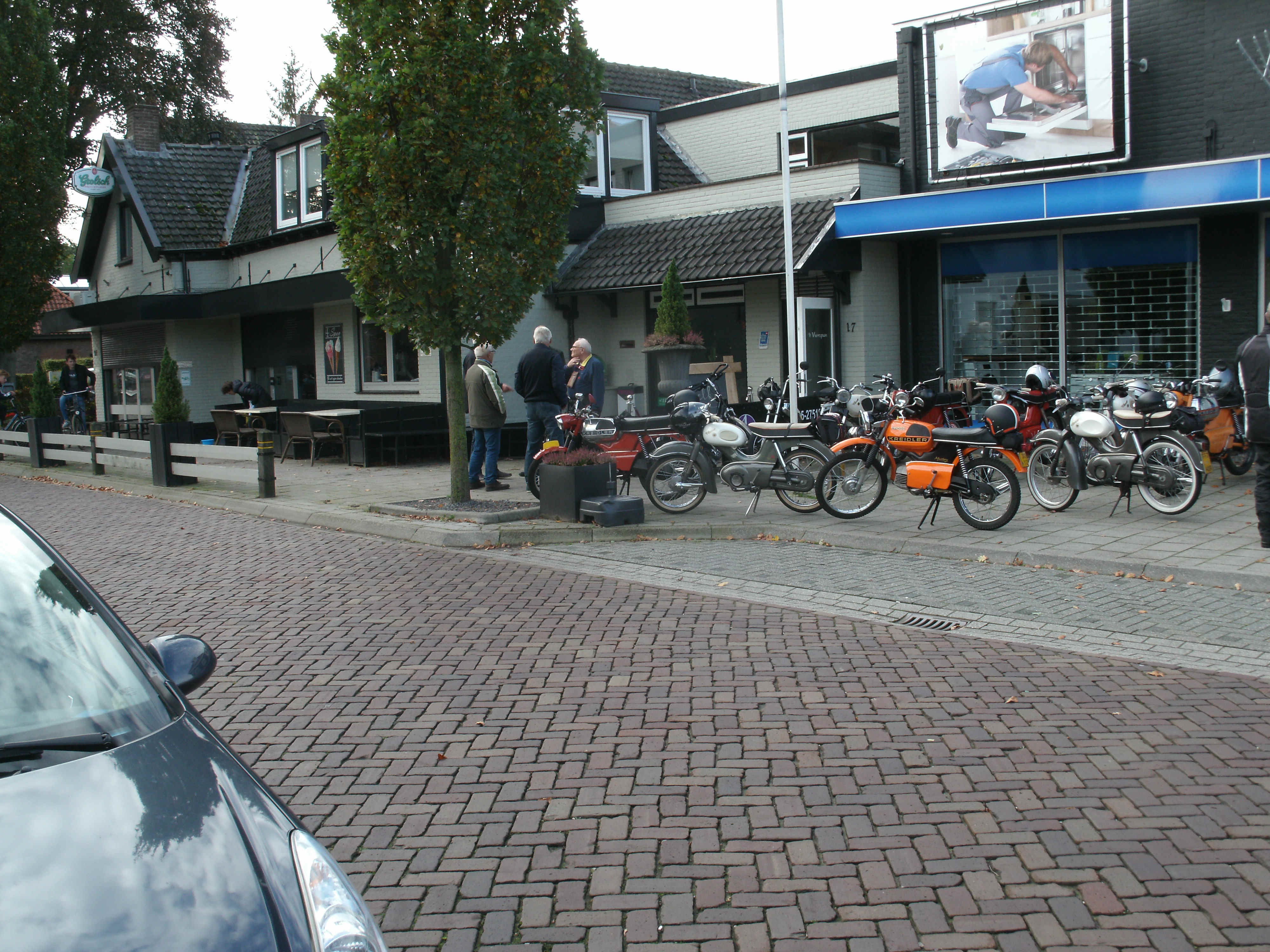 Bij het ‘t Vierspan aangekomen was het al lekker druk en tegen 11 uur zijn we met ongeveer 35 bromfietsen van start gegaan.