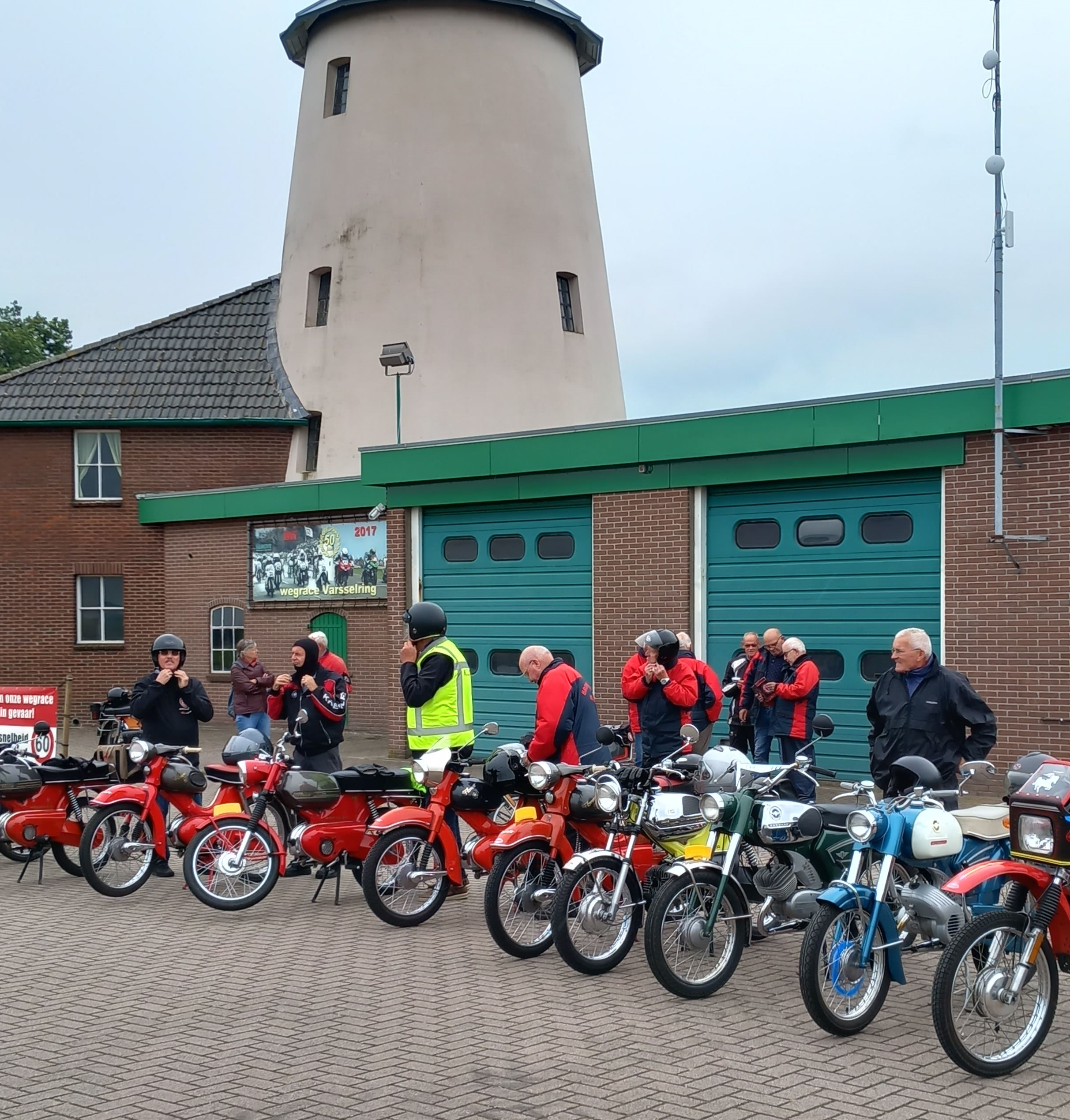 Om illegaal racen te voorkomen, is een deel van het circuit verboden voor motoren. Wij hebben het circuit toch afgereden, waarbij Frans had aangegeven dat dit voor de Kreidler motoren eigenlijk dus niet was toegestaan. Ik heb een enkeling nog met de buik op de tank zien rijden. Met Frans als voorrijder en mijn vrouw met haar Flory daar direct achter, was de snelheid niet racewaardig en dan ook geen reden voor paniek of wat dan ook. De races op de Varsselring waren dit jaar op 01 mei en georganiseerd door de Hengelose Motorvereniging Hamove. Hier een linkje voor aanvullende informatie: https://www.hamove.nl/ Het evenement trok zo'n 7000 bezoekers.