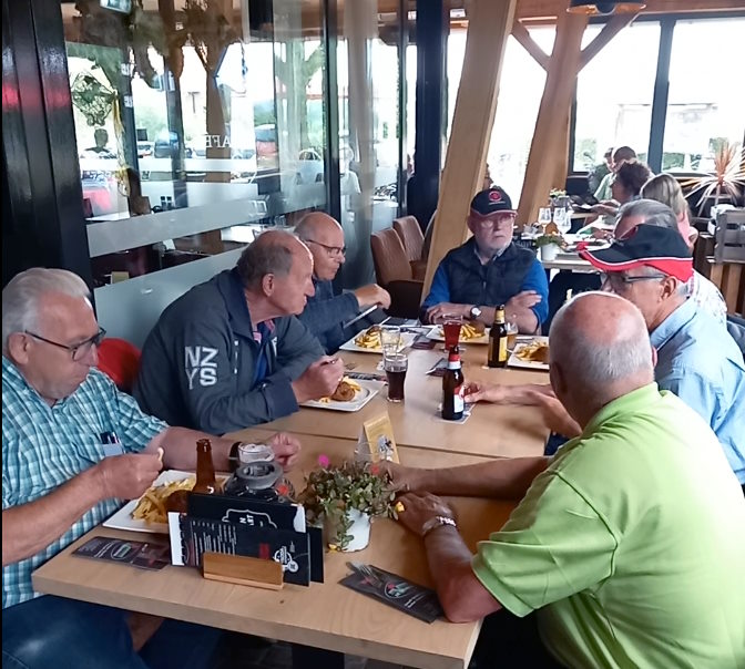 Na het bezoek aan de Varsselring was het nog een drietal kilometers naar het restaurant "De Veldhoek". Ondanks de gezellige drukte, was er toch ook nog wat ruimte voor onze groep. Wij hebben genoten van een eenvoudige doch voedzame maaltijd.