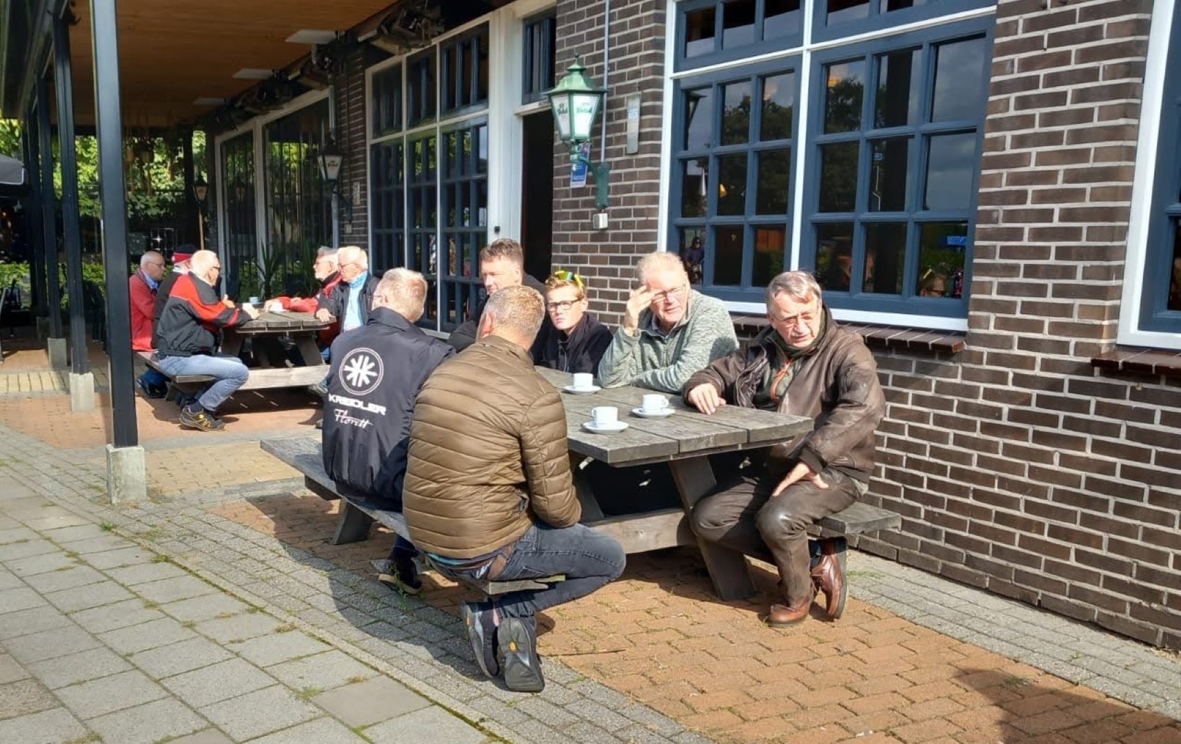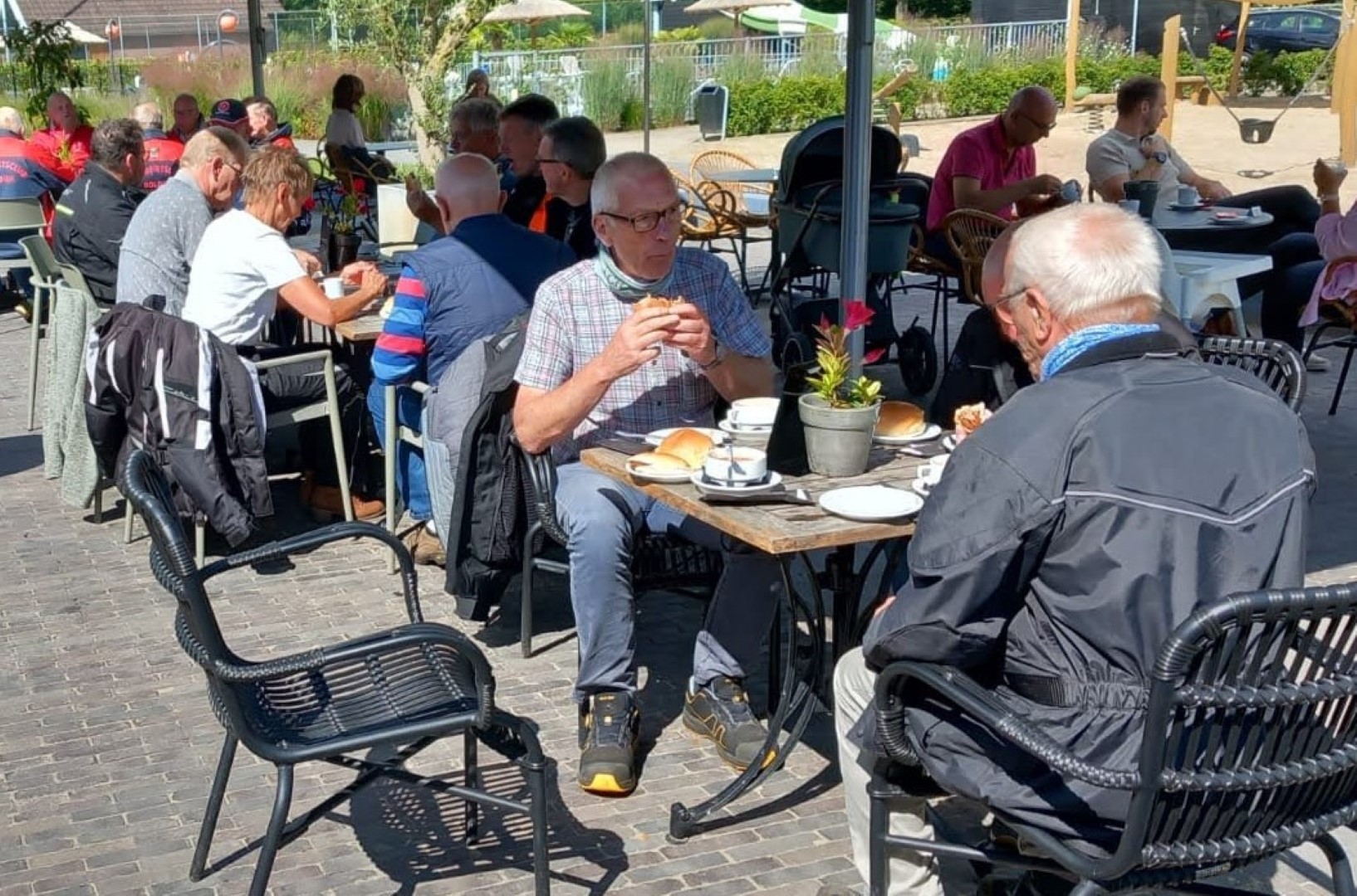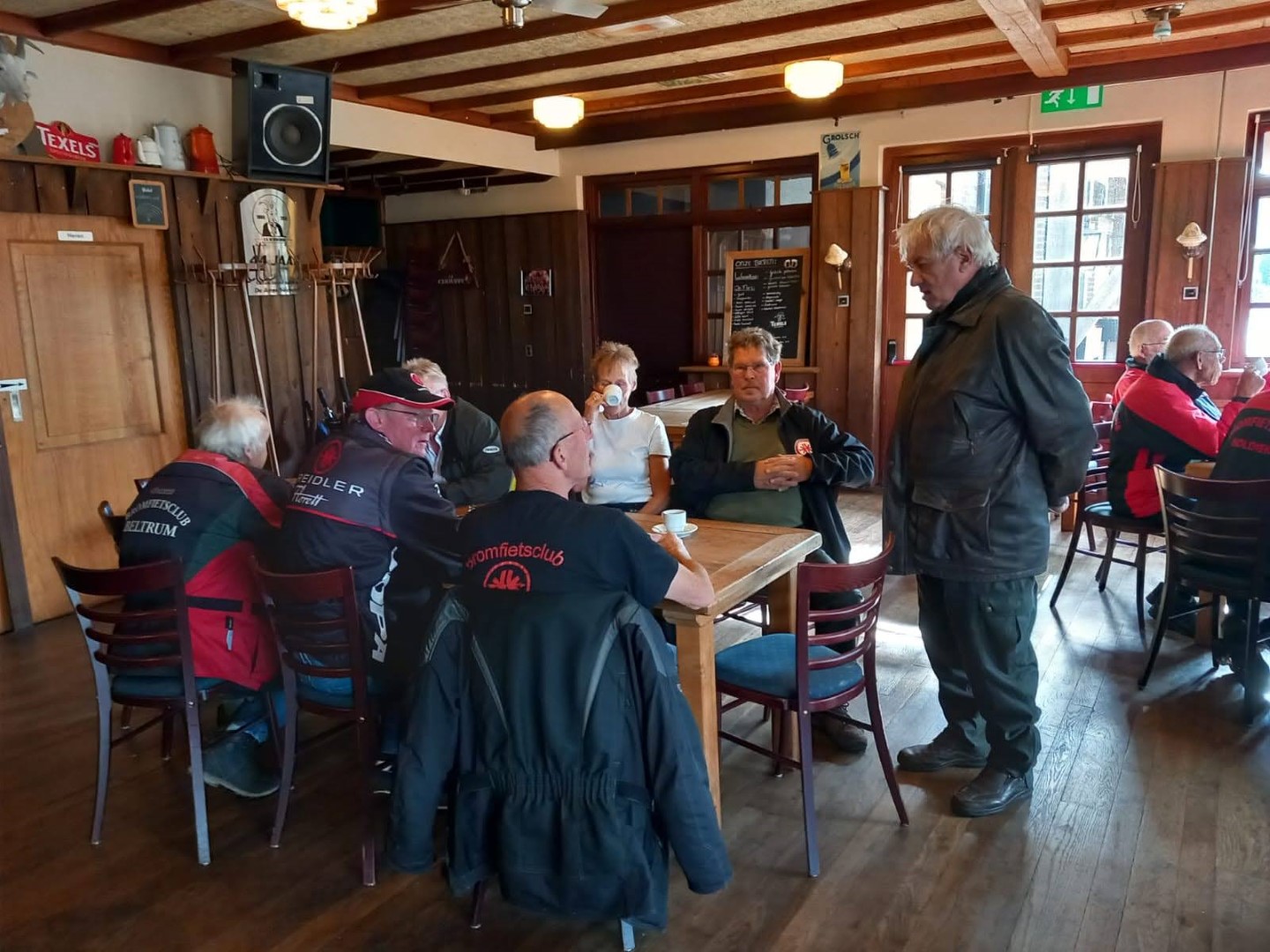 Na de pauze van drie kwartier en het maken van een groepsfoto door hoffotograaf Peter Schoenmakers ging het via t’ Woold, de Heurne, Bredevoort en t’ Klooster naar t‘ eindpunt Vragender. Rond de klok van 14.00 uur was de tocht van ,,pak um beet,, 70 km volbracht. Onderweg een aantal duimpjes gezien en een enkele dame die de neus dichtkneep maar volgens mij wederom een geslaagde tourrit. Nog even een drankje na afloop genomen bij Overkamp en even nagepraat op het terras. Het was wederom een geslaagde dag met dank aan de organisatie.