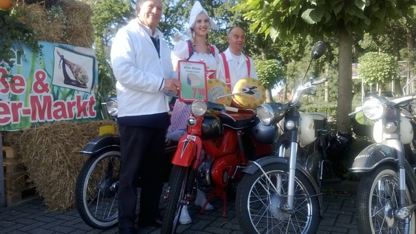 Frau Antje was prominent aanwezig. Onze secretaris wist haar over te halen om te poseren bij zijn (onze) Kreidlers, zodat ze nog beter tot hun recht zouden komen. Ze staan er allemaal fraai op, ook onze blonde deerne.