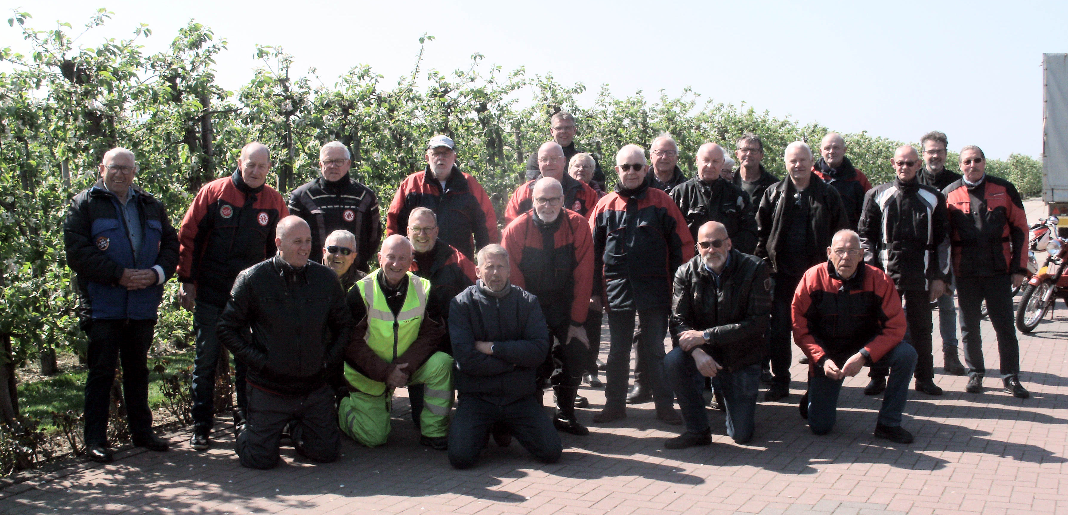 Op zondagmorgen verzamelden zich zo’n 30 enthousiaste brommersrijders op de parkeerplaats van de McDonald’s in Duiven. De auto’s met aanhangers stonden netjes naast elkaar. De brommers waren intussen op de naastgelegen parkeerplaats in een imposant rijtje naast elkaar gezet. Het was prachtig weer met een bleek zonnetje en 17 graden. Iedereen droeg warme kleding, goed voorbereid op wat komen zou. De dag werd gestart met het befaamde Kreidler bakkie, waarbij iedereen weer even kon bijkletsen. We kwamen niet alleen voor de koffie, maar vooral ook om in een lange stoet de omgeving te verkennen en de prachtige bloesem te bewonderen. Na het verlaten van de parkeerplaats reden we als eerste de dijk bij Duiven op, waarna we de bruggen over de IJssel en de Rijn overstaken om vooral in het gebied tussen Arnhem en Duiven rond te toeren. In de eerste kilometers konden we genieten van het prachtige traject over de Rijndijk richting Angeren. Na een twintigtal kilometers werd er