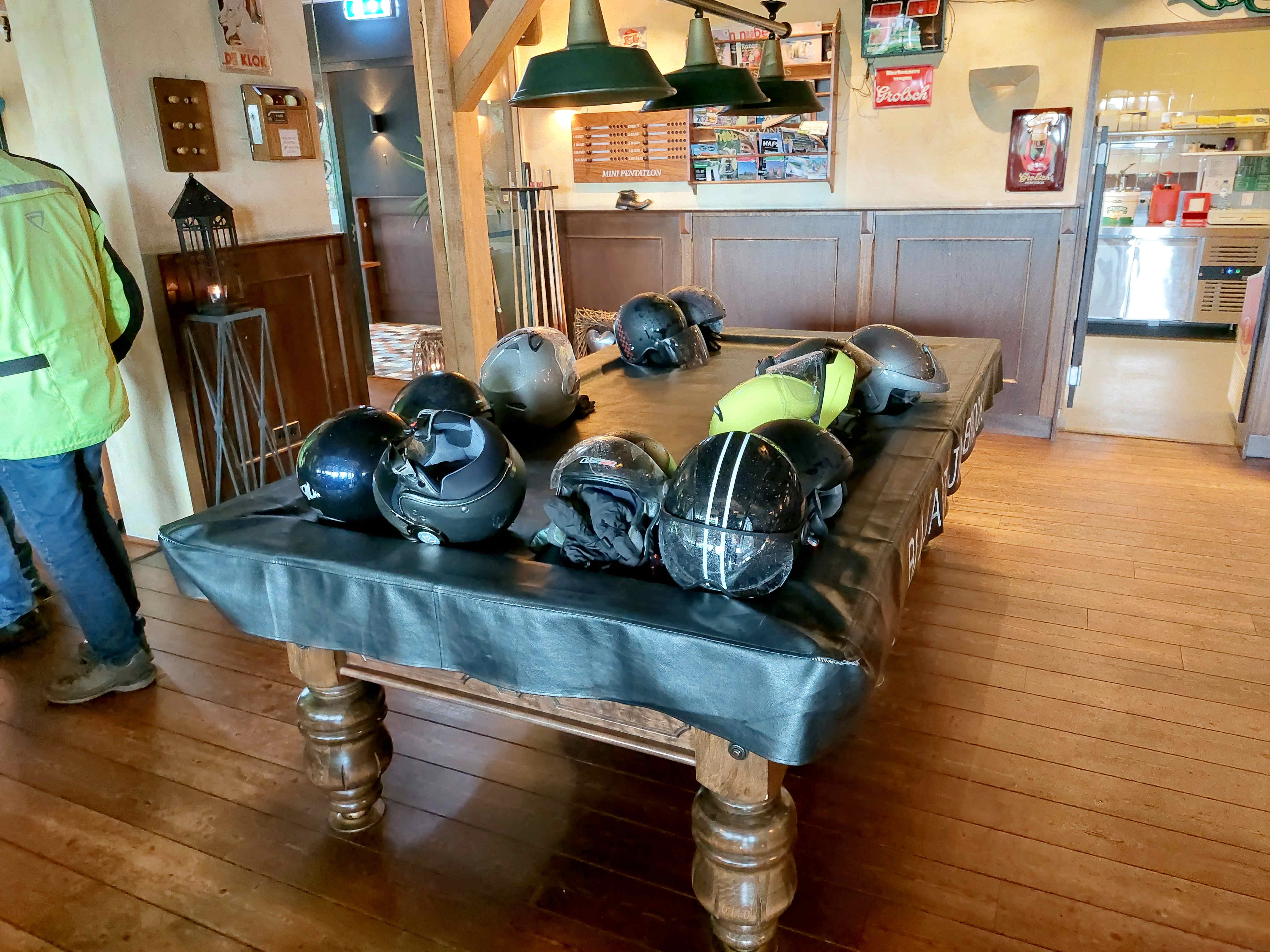 Dit café is bekend van de band Normaal. Het was jarenlang hun stamkroeg en menig idee voor een høkers idee werd aan de stamtafel van Normaal geboren. Toen ik om ongeveer 10.15 uur aankwam, had ik er vanuit Nijverdal al 55 km opzitten en was niet de eerste. Uiteindelijk waren we met ongeveer 20 brommers. (Ik weet het niet precies meer).