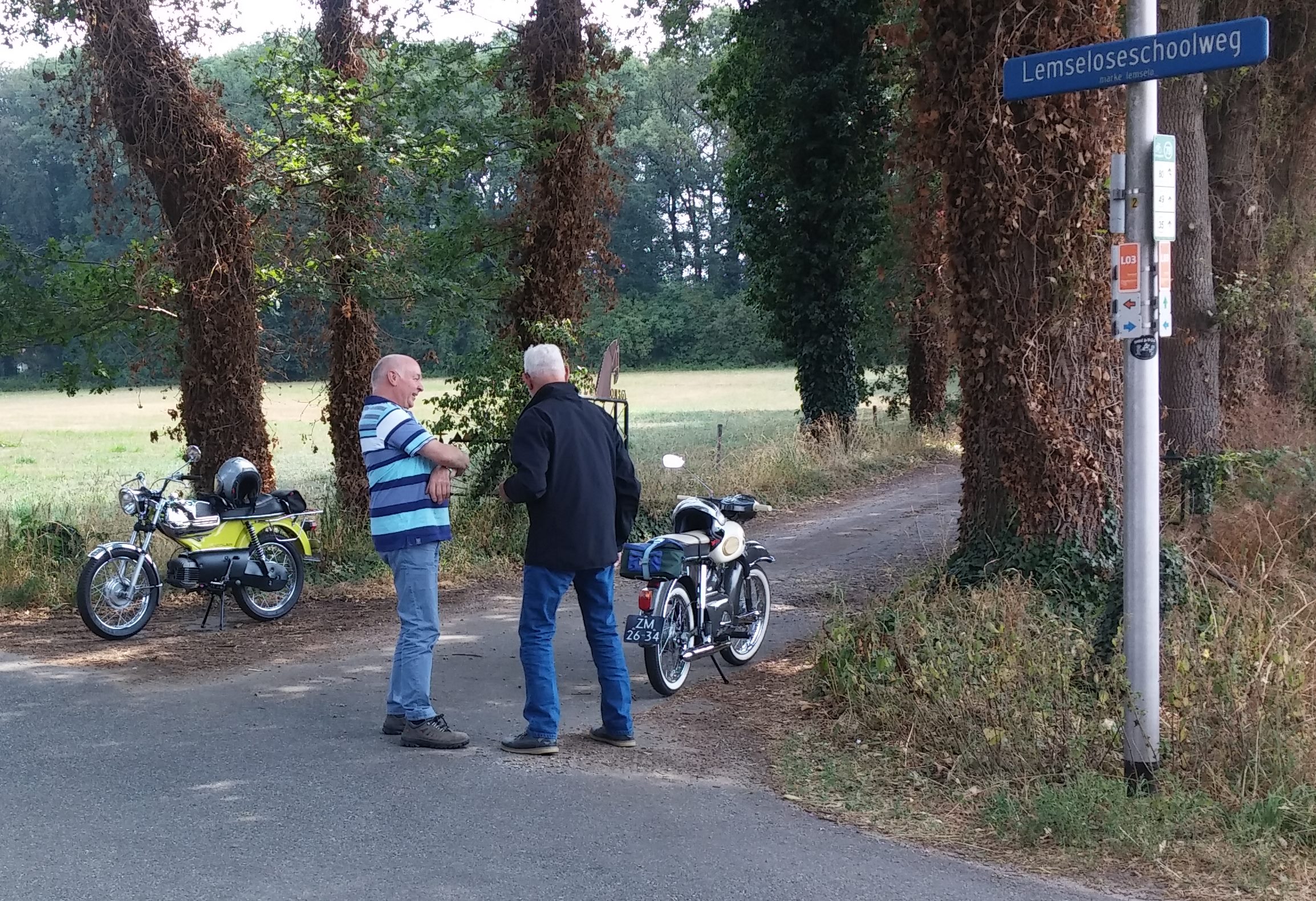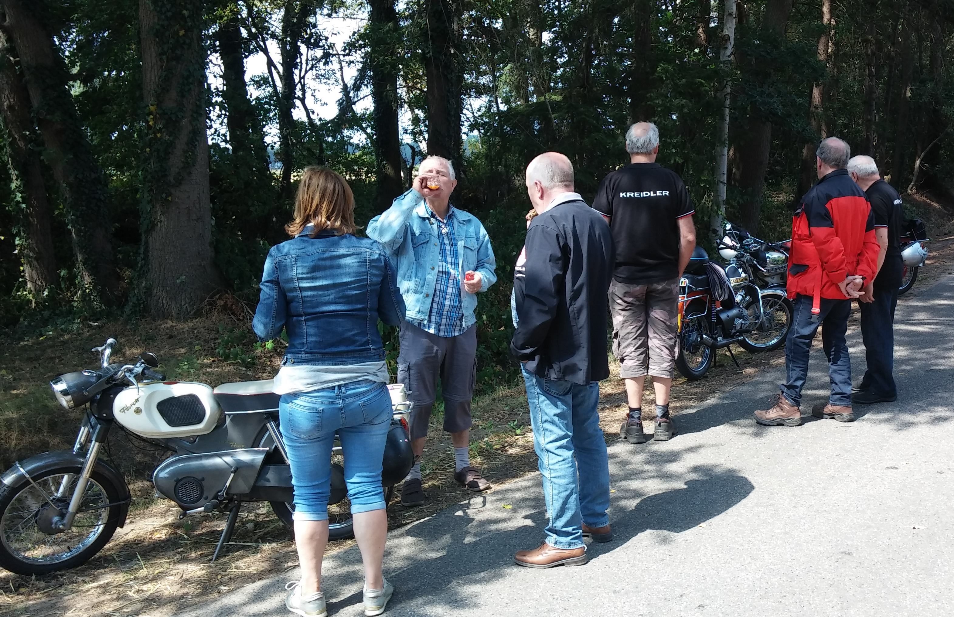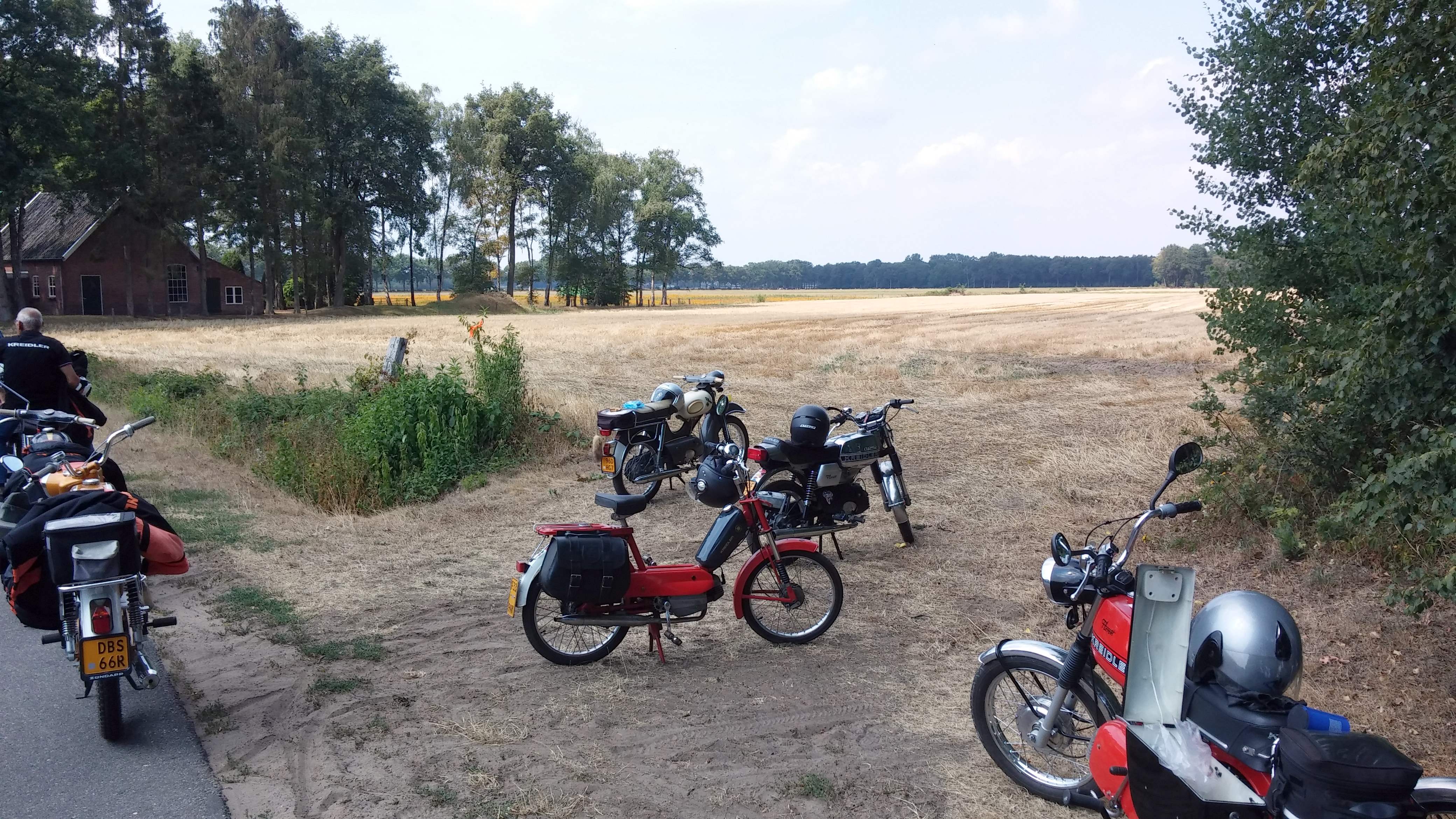 Volgens mij hadden we slechts één pech gevalletje: een uitlaatbocht van een Zündapp dames brommertje was los gerammeld.