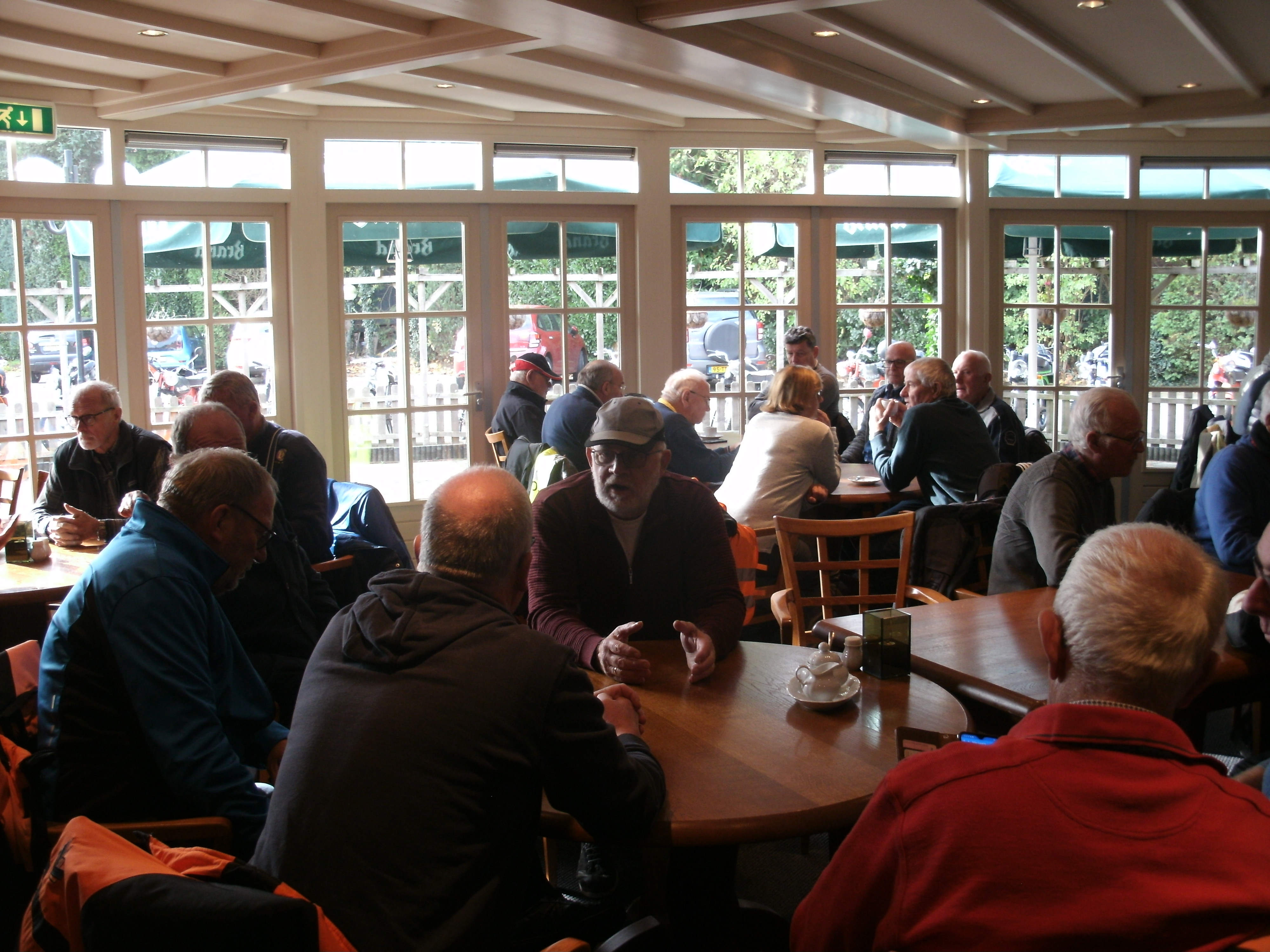 Bij het ‘t Vierspan aangekomen was het al lekker druk en tegen 11 uur zijn we met ongeveer 35 bromfietsen van start gegaan.