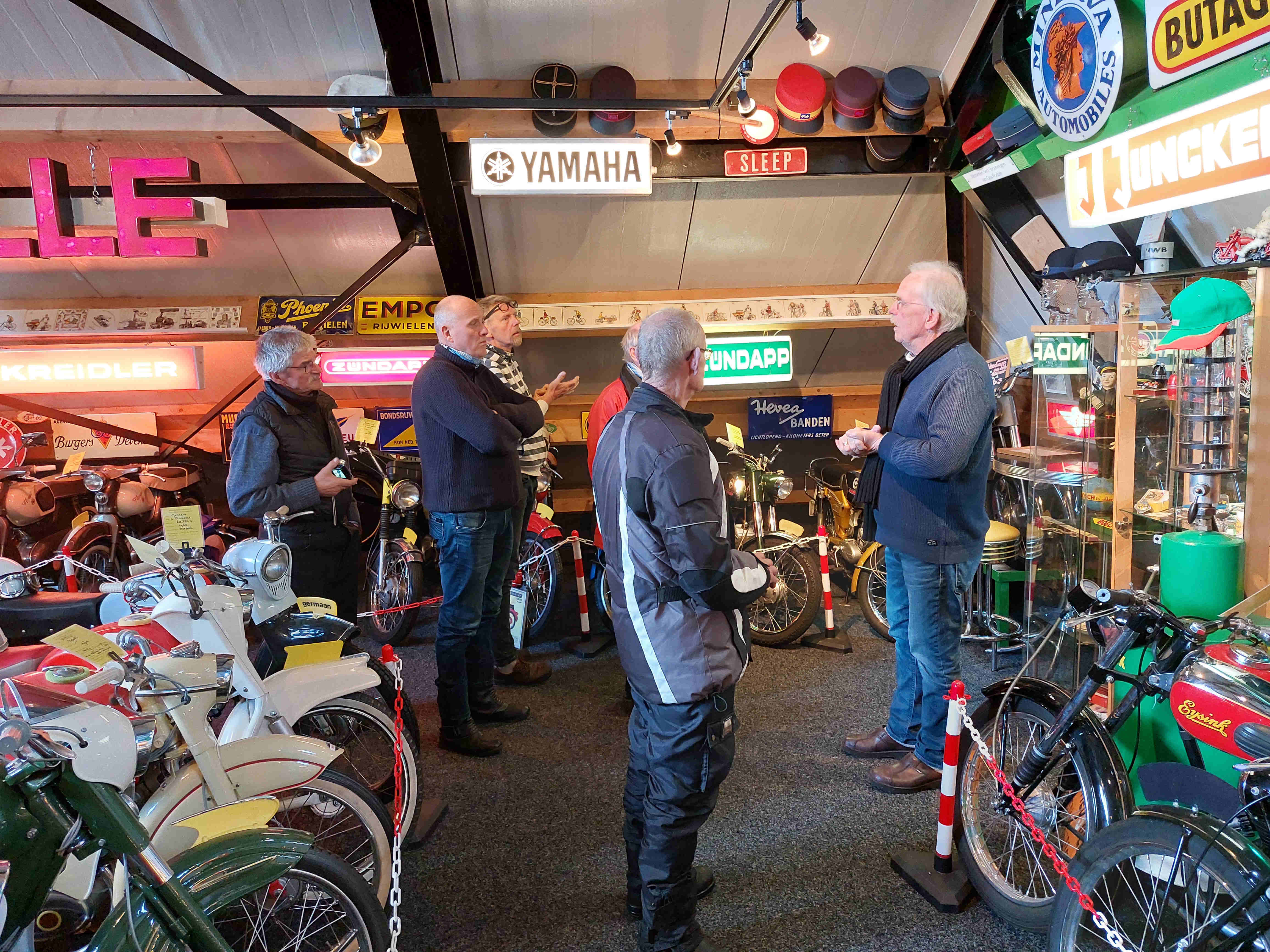 We namen plaats in het restaurant. De eigenaar was een beetje verbaast dat we maar met 15 mensen waren, hij had er meer verwacht. Maar het mocht de pret niet drukken. Peter had een arrangement geregeld en daar hoorde ook een bezoek aan het bromfiets museum bij. Dat was (althans voor mij) een verrassing.