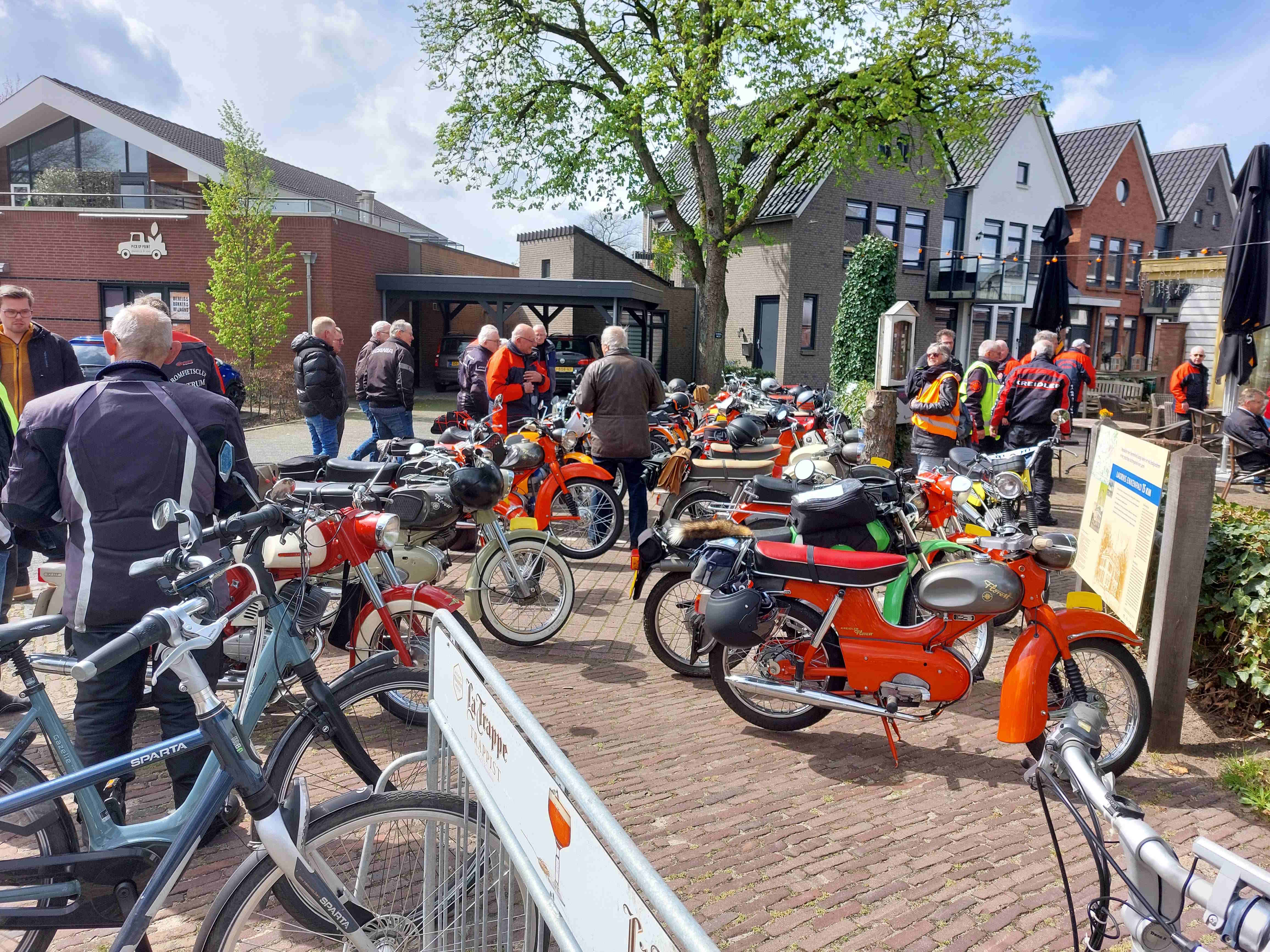 Op het terras dronken we ons traditionele kopje koffie en gingen met 38 deelnemers om elf uur van start. Peter