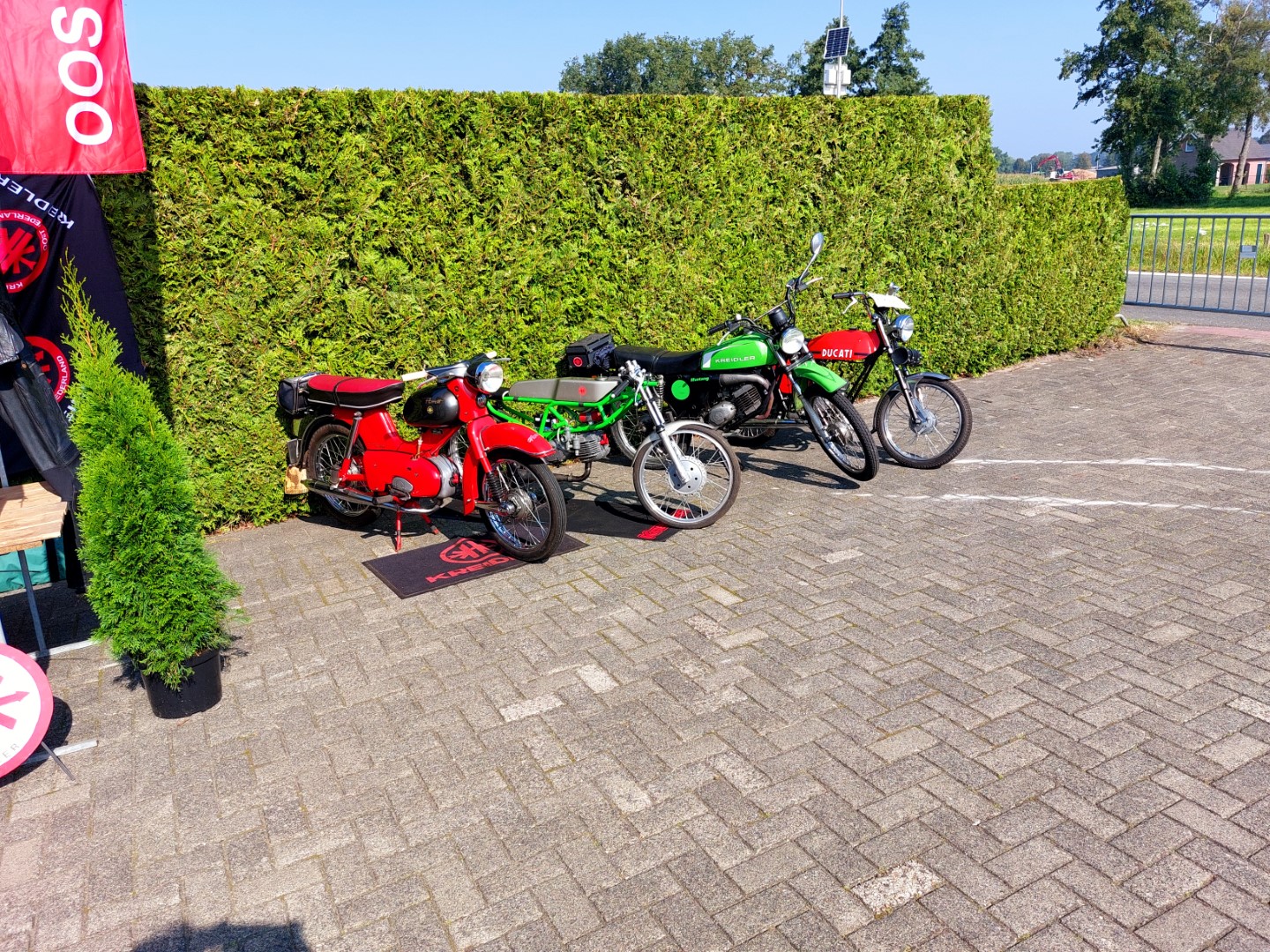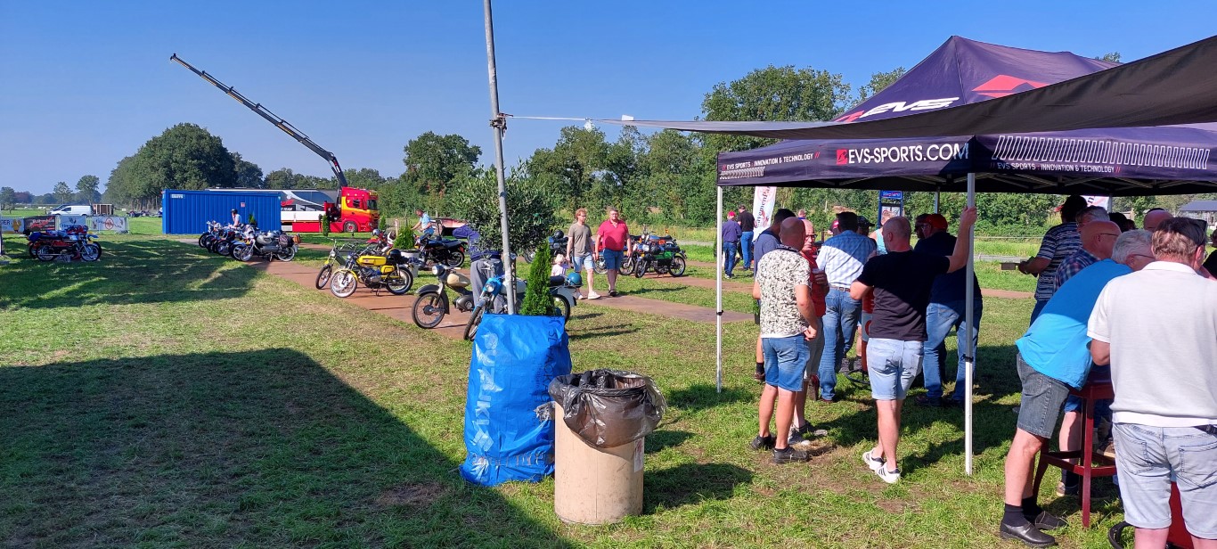 maar op een apart terreintje. De andere standhouders die er stonden hadden het zelfde probleem. Langs de zijkant van het brommer terrein stond een
