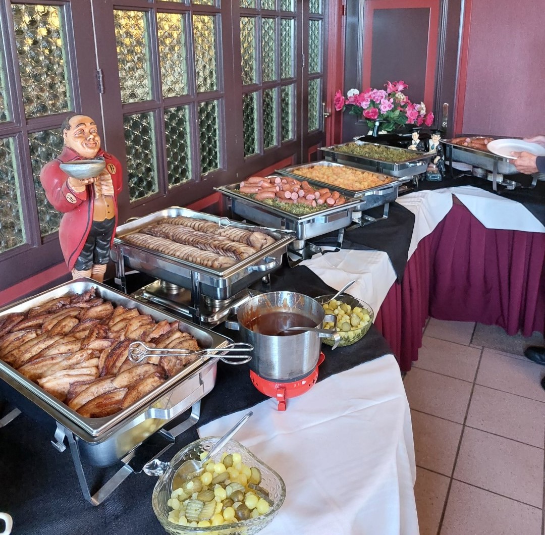 En zo als het er uitzag zo smaakte het ook. We hadden keuze uit stamppot boerenkool of wortelen met daarbij rookworst, rollade of speklappen. Meer dan voldoende.
