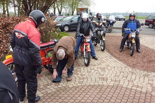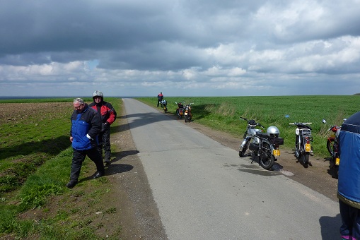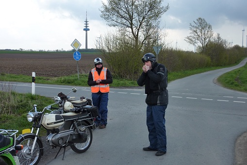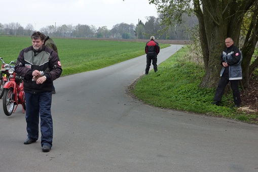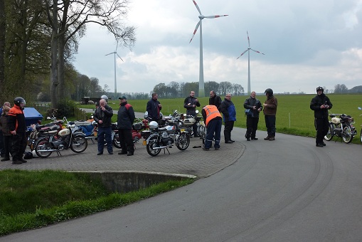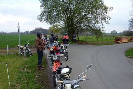 We zijn naar Eibergen gereden en via Rekken in Oldenkotte de Nederlands / Duitse grens over gegaan. In Duitsland hebben we zoveel mogelijk kleine weggetjes gereden en via Lünten naar Graes en Ahle gereden. Het weer was nog steeds goed en de Kreidlers liepen allemaal prima waardoor ik ongeveer een snelheid van 50 km/uur kon rijden. Na 40 kilometer zijn we maar even gestopt om even te vragen of alles goed ging bij iedereen en even een plakje brood te eten.