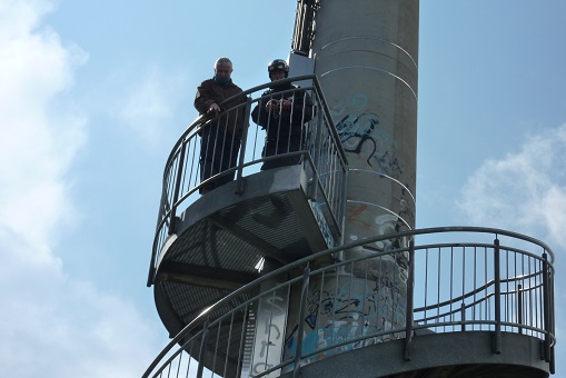 We kwamen langzamerhand in een iets heuveliger gebied en daaraan konden we merken dat de Schöppinger berg niet ver meer was. Om ongeveer 12 uur waren we in Schöppingen en daar gingen we links af de berg op. Ik zag in de spiegel verschillende Kreidlers kleiner worden maar de blauwe rookpluim werd alleen maar groter. Er moest even 1 of 2 keer terug geschakeld worden om naar boven te komen maar iedereen kwam goed boven. De een wat sneller dan de ander, maar dat maakt natuurlijk niets uit. Boven op de berg hebben we weer even een korte pauze bij de uitkijkpost gemaakt om wat plaatjes te schieten.