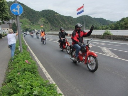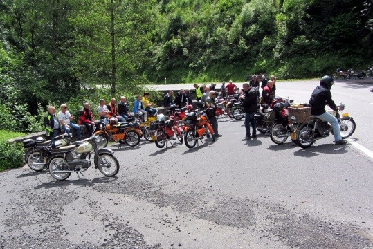 Dit vergt stuurmanskunst. Wij hielden het echter op een meer gereserveerd tempo, domweg omdat hier veel te zien is en onze brommers niet zo hard gaan.De brommerrijders hielden hun eerste pauze bij restaurant Schmausemühle.