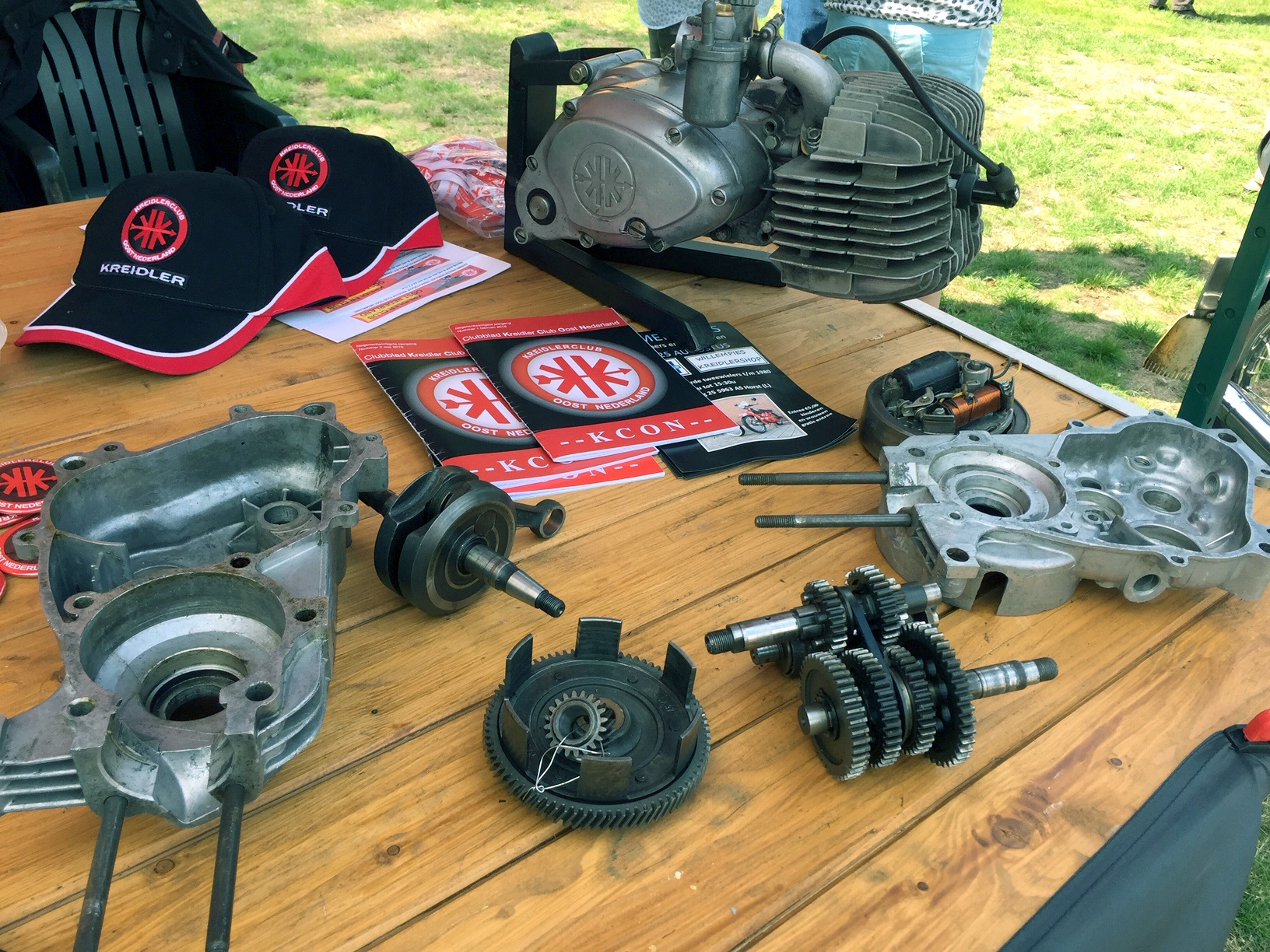clubbladen, jacks, petjes. Ook stond er een Kreidler blok met roterende inlaat en een blok in onderdelen.