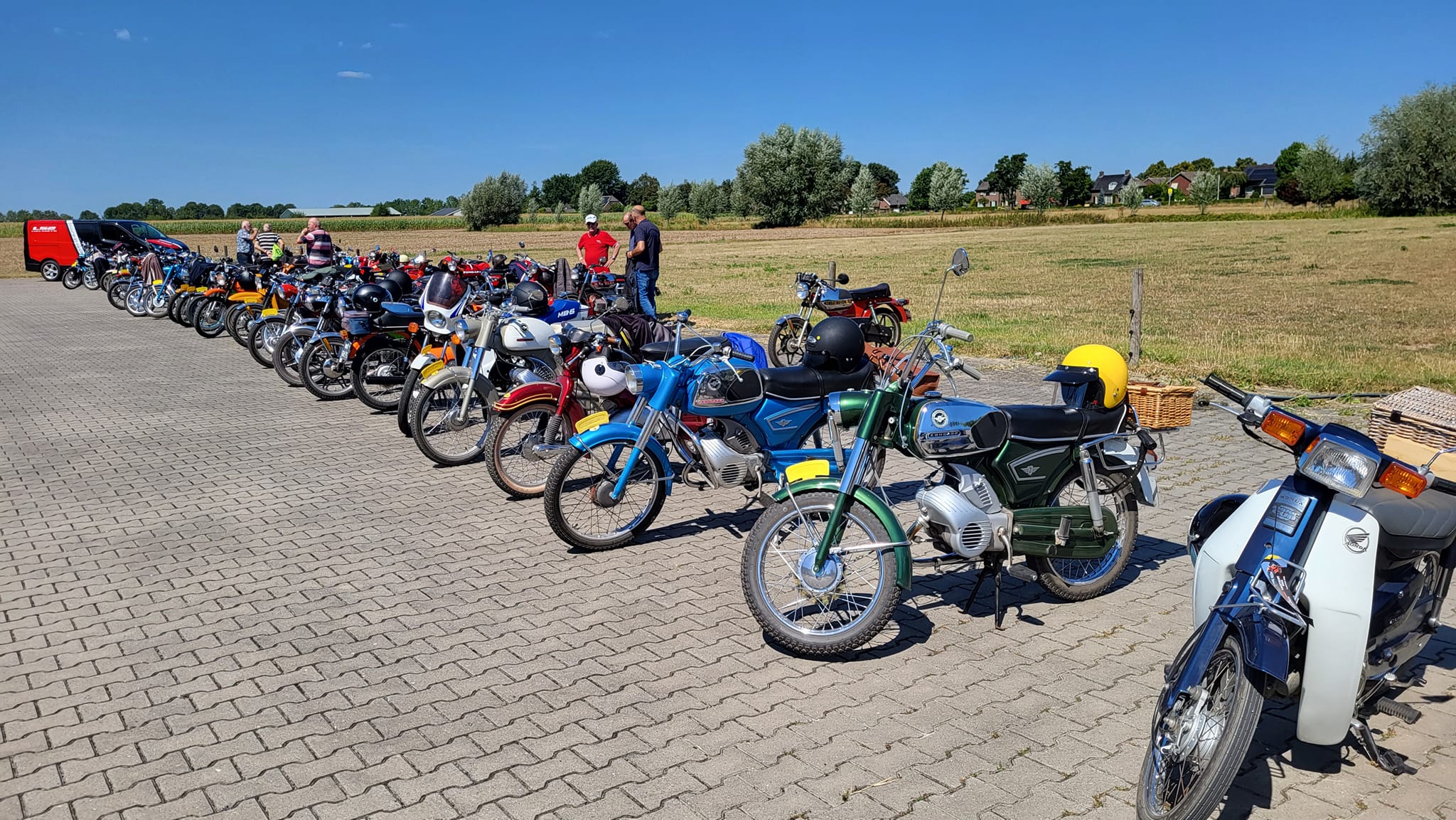 Door de drukte hebben we ook niet Kreidler rijders ingeschreven. Uiteindelijk hebben zich in totaal zo’n 200 rijders ingeschreven. Iedereen kreeg een consumptiebon, een vaantje, een routebeschrijving en een polsbandje voor herkenning bij de pauzeplek.