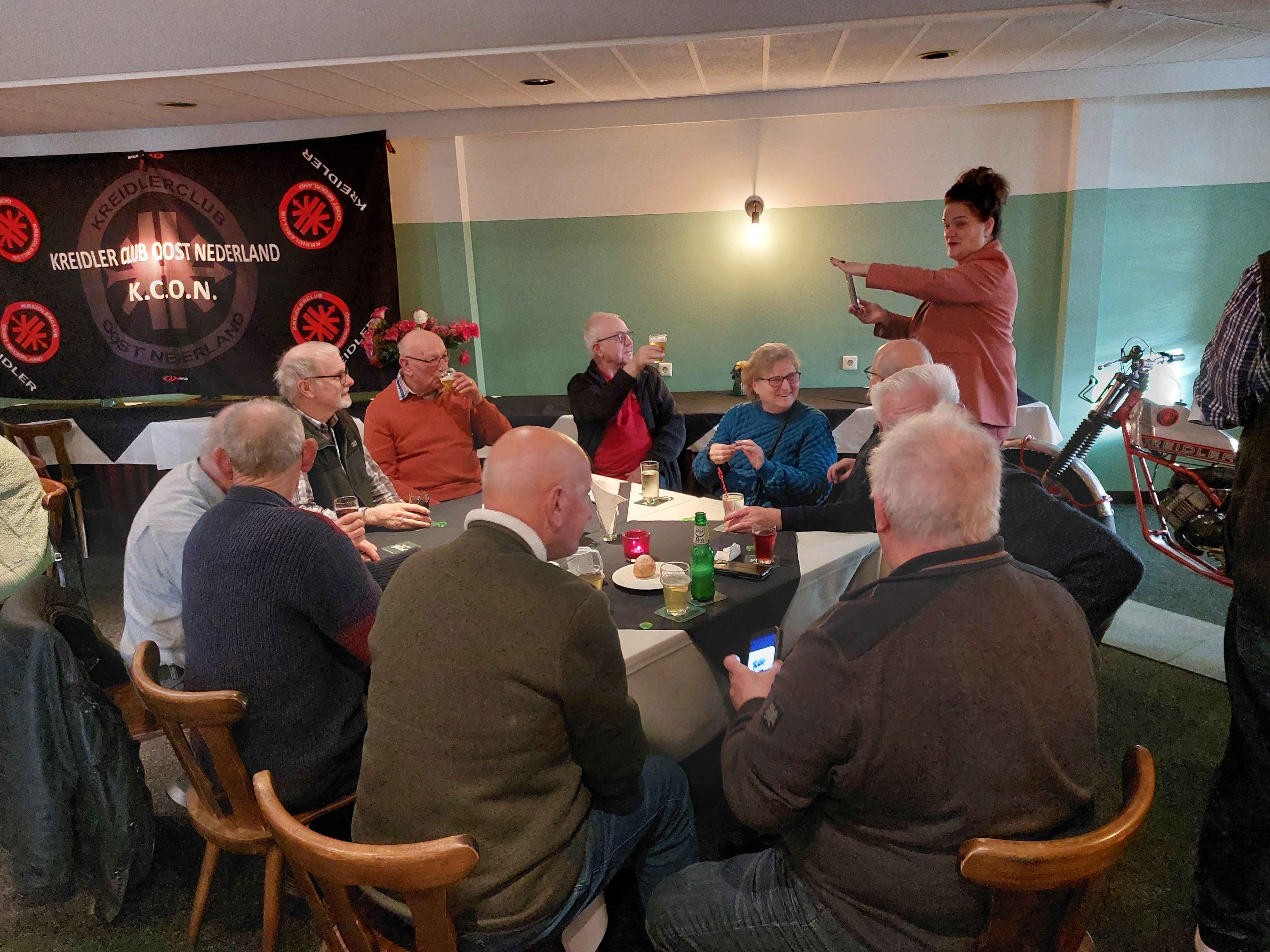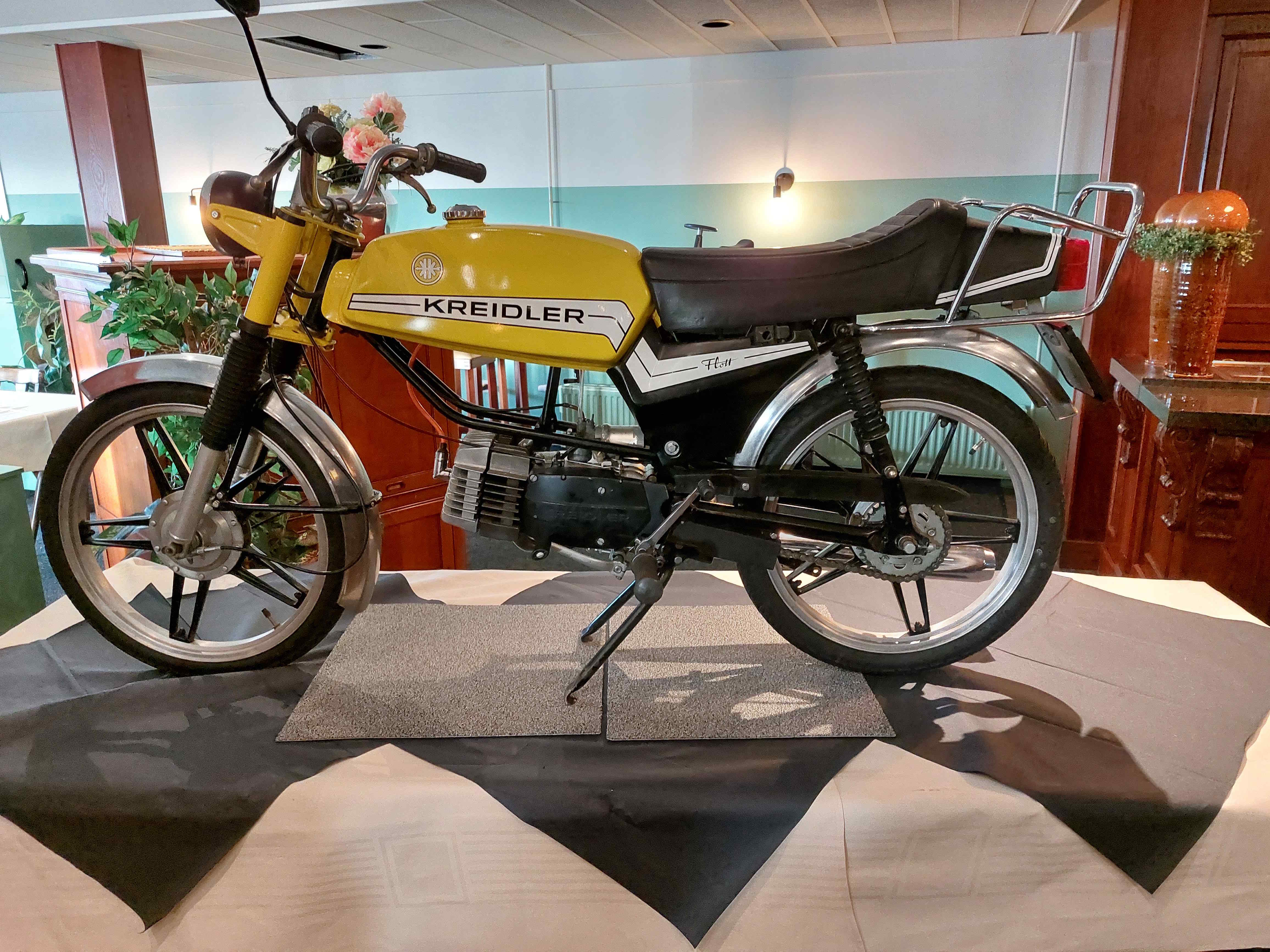 De zaal was zoals altijd weer knus ingericht met op verschillende plaatsen een mooie Kreidler.