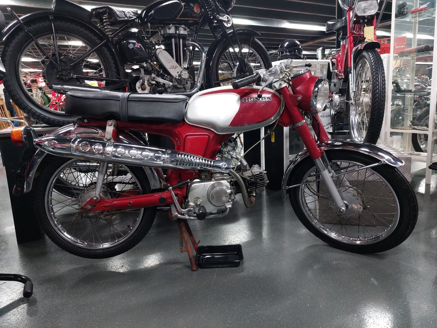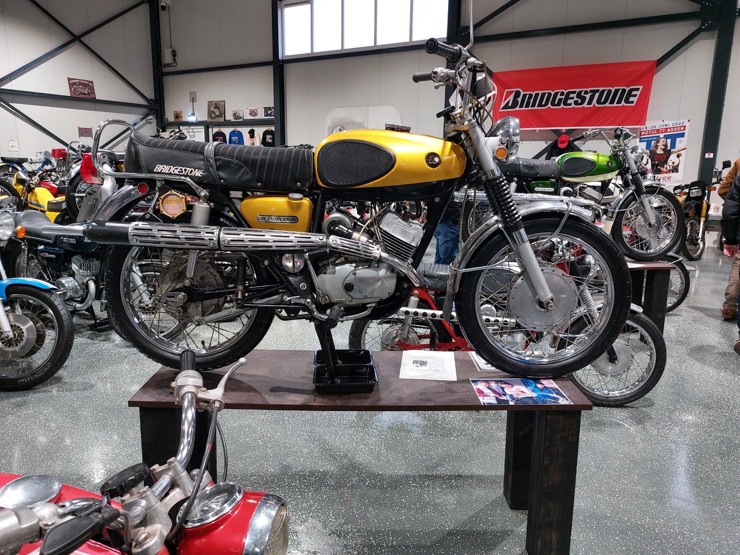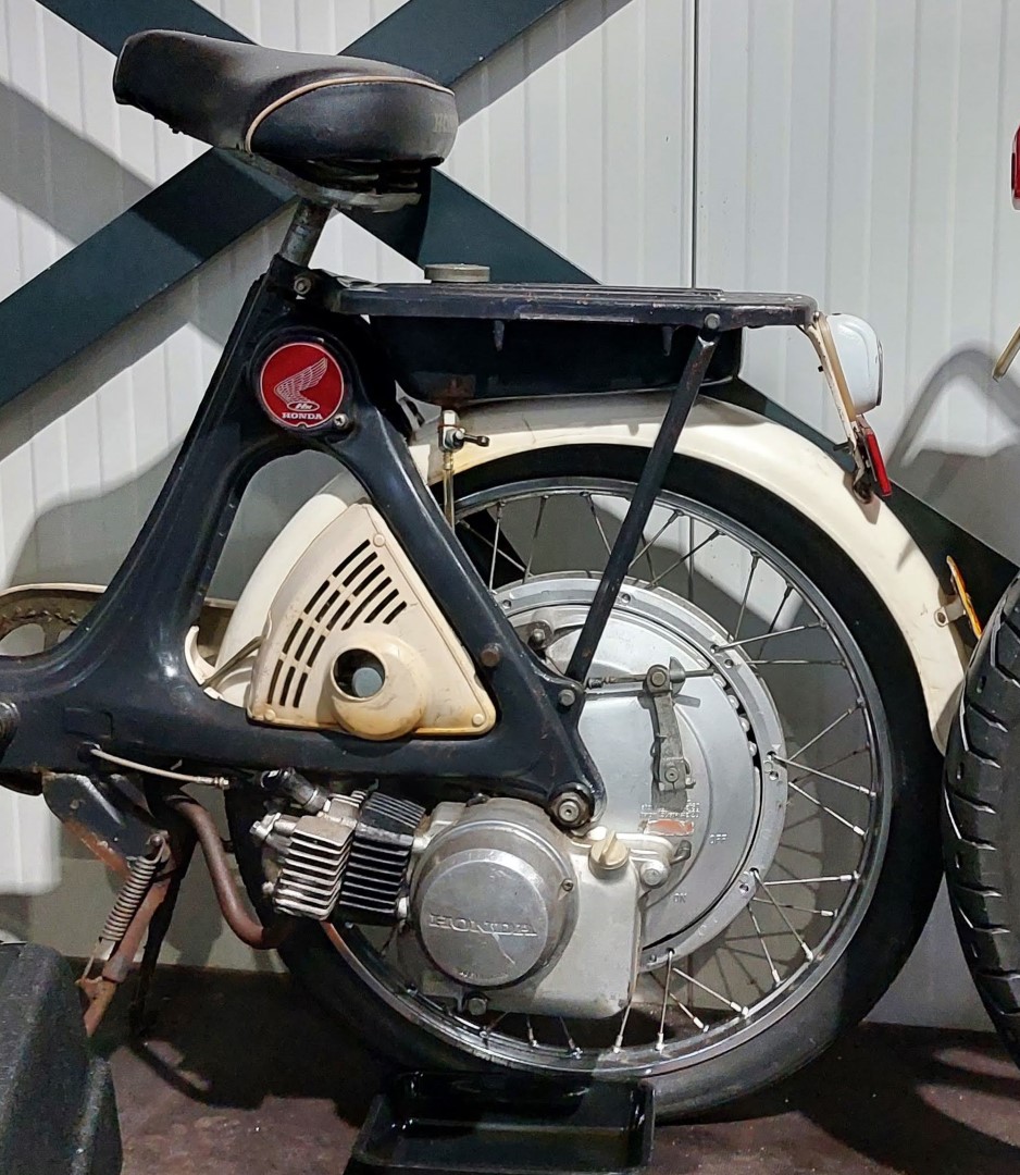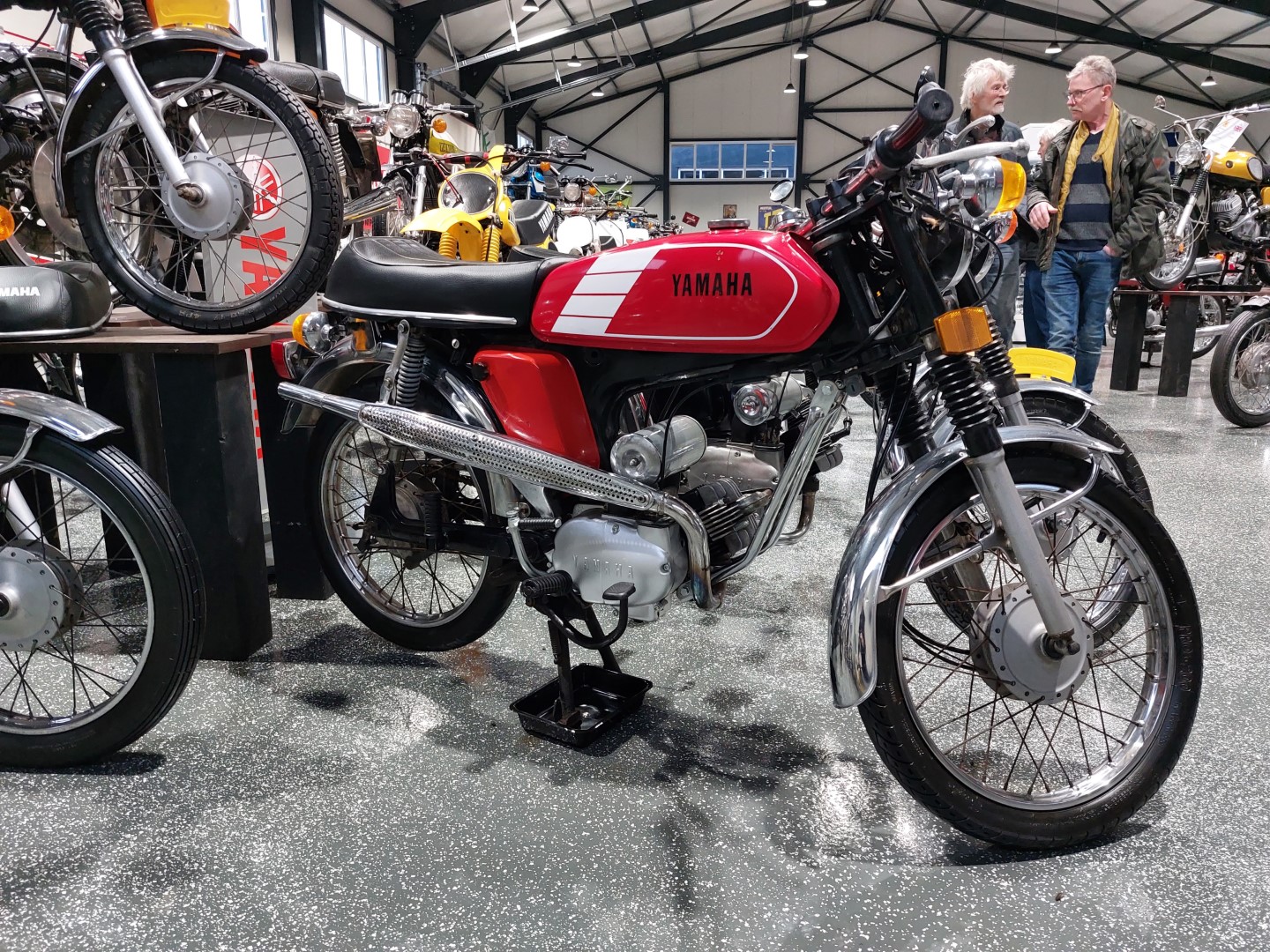 Ook een uitgebreide serie Japanse motoren zijn aanwezig. Verschillende merken zoals Honda, Yamaha, Suzuki, Kawasaki enz. Het aantal Honda machines spande echter de kroon. Speciaal keek ik nog even of er een “dames” bromfiets van Honda stond met de motor aan het achterwiel gebouwd. Zo een had een buurmeisje van mij vroeger. En warempel er stond er een.
