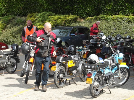 We zijn met ons drieën (mijn Kreidlervriend Nico Neuteboom en mijn zoon Martijn Slingerland) vertrokken met prachtig weer op vrijdag 23 mei om 8:30 uur richting Dasburg. We kwamen daar aan om 13:00 uur in de regen. We werden uiterst hartelijk ontvangen door Jan en Hilly Koelewijn van motorhotel Daytona en door allemaal goed gehumeurde Kreidler vrienden en vriendinnen. De omgeving was ook hier prachtig en het etablissement zag er heel gezellig uit. Al snel stopte het met regenen en werd het mooi en droog weer! Na dat we de boel hadden afgeladen en de tassen op de mooie rood/gele kamer hadden gezet was het even tijd voor een drankje op het terras. Om 15:00 uur gingen we eindelijk rijden onder leiding van Wim Top, die daar een paar weken eerder even de omgeving had verkend en een mooie route had uitgezet. Hij heeft met Jan de Groot en Ben Eenink 1100 km gereden met de auto om dit te realiseren. Wij zijn die middag met 15 man en 1 vrouw richting Clerveaux gereden en een beetje rond het hotel. Na 40 km te hebben gereden waren we om 16:15 terug. Tijd voor een versnapering, maar Nico ik en mijn zoon hadden zin in meer kilometers, dus we zijn voor het diner nog een stukje rond gegaan. Om 18:30 hebben we van het diner genoten en meteen erna liepen Thomas en Gerhard Beumer naar buiten. Ik dacht eerst dat ze gingen roken ofzo, maar echt niet. Meteen de helm weer op en we zijn er direct achteraan gegaan. Harry Rouhof was er ook bij en hij was al sinds 11:00 uur daar en was niet van zijn blauwe Kreidler af te krijgen. De route ging over de door Harry eerder die middag ontdekte geitenpaden, en dat hebben we geweten ook. Af en toe in de eerste versnelling en een beetje bagger op de wegen. Prachtig!!