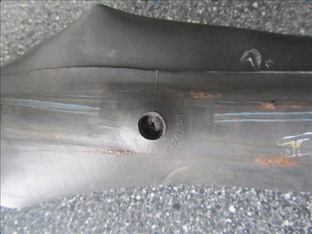 De oorzaak van de valpartij met mijn RS, was dat van het een op het andere moment het ventiel uit de achterband was verdwenen, iets wat bij mijn weten niet veel voorkomt.