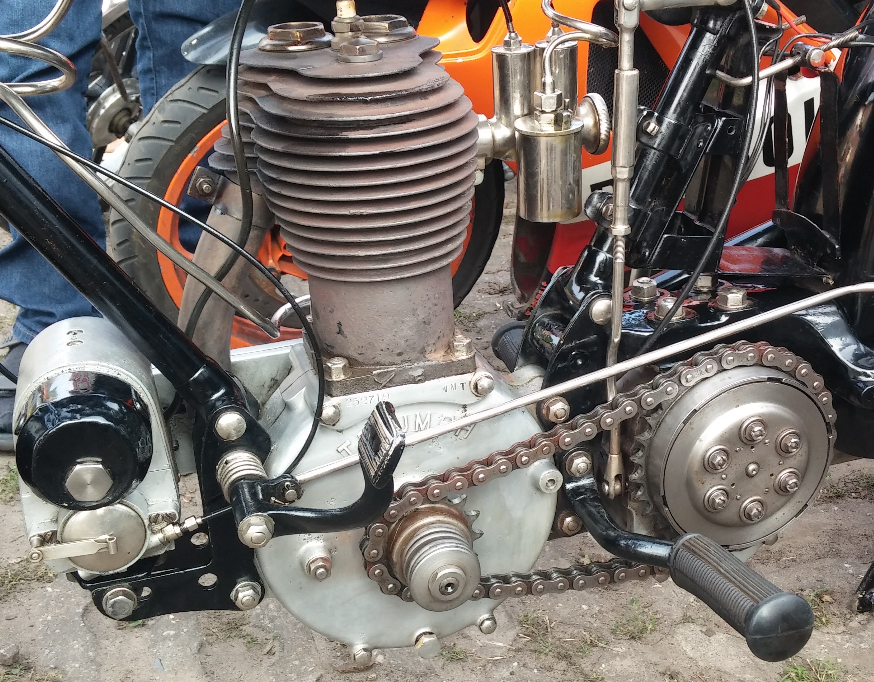 Triumpf motor c.a. 1922 met open primaire kettingaandrijving