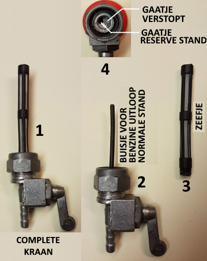 carburateur kijken. Deze uit elkaar gehaald en alle gaatjes door geblazen, daar kon het hem ook niet meer aan liggen. Toevalligerwijs draaide ik de benzine kraan open, er kwam wel benzine uit. Toen ik echter het kraantje doordraaide naar reserve was de benzinestroom veel groter. Terug naar de gewone stand kwam er een veel kleiner hoeveelheid uitlopen.