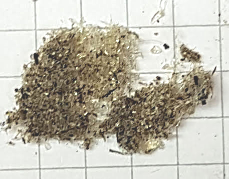 Maar wat er wel uitkwam waren een heleboel van die haartjes. Echter niet zacht maar brokkelig zie onderstaande figuur.