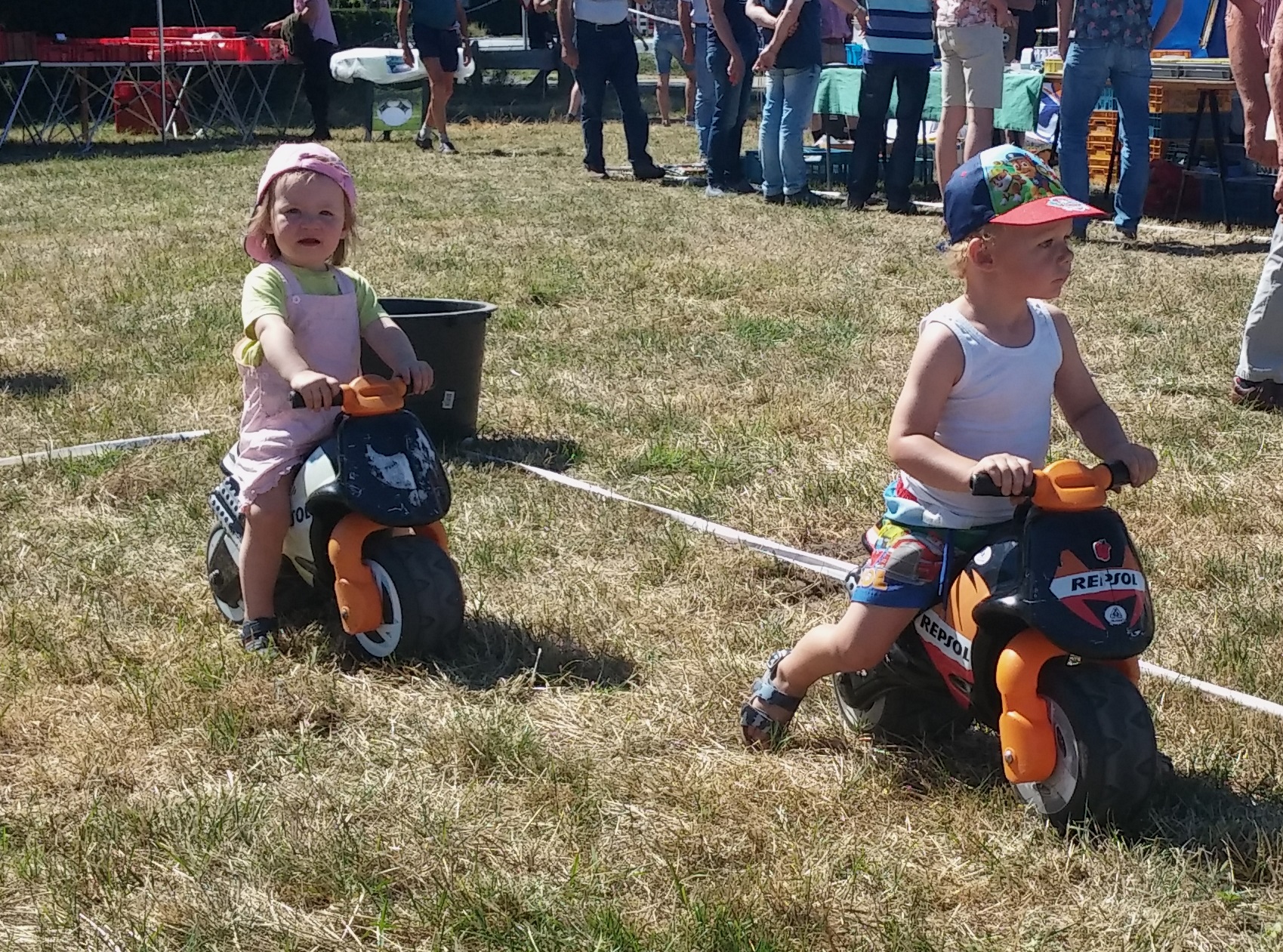 De kinderen met de mini Repsol brommertjes.