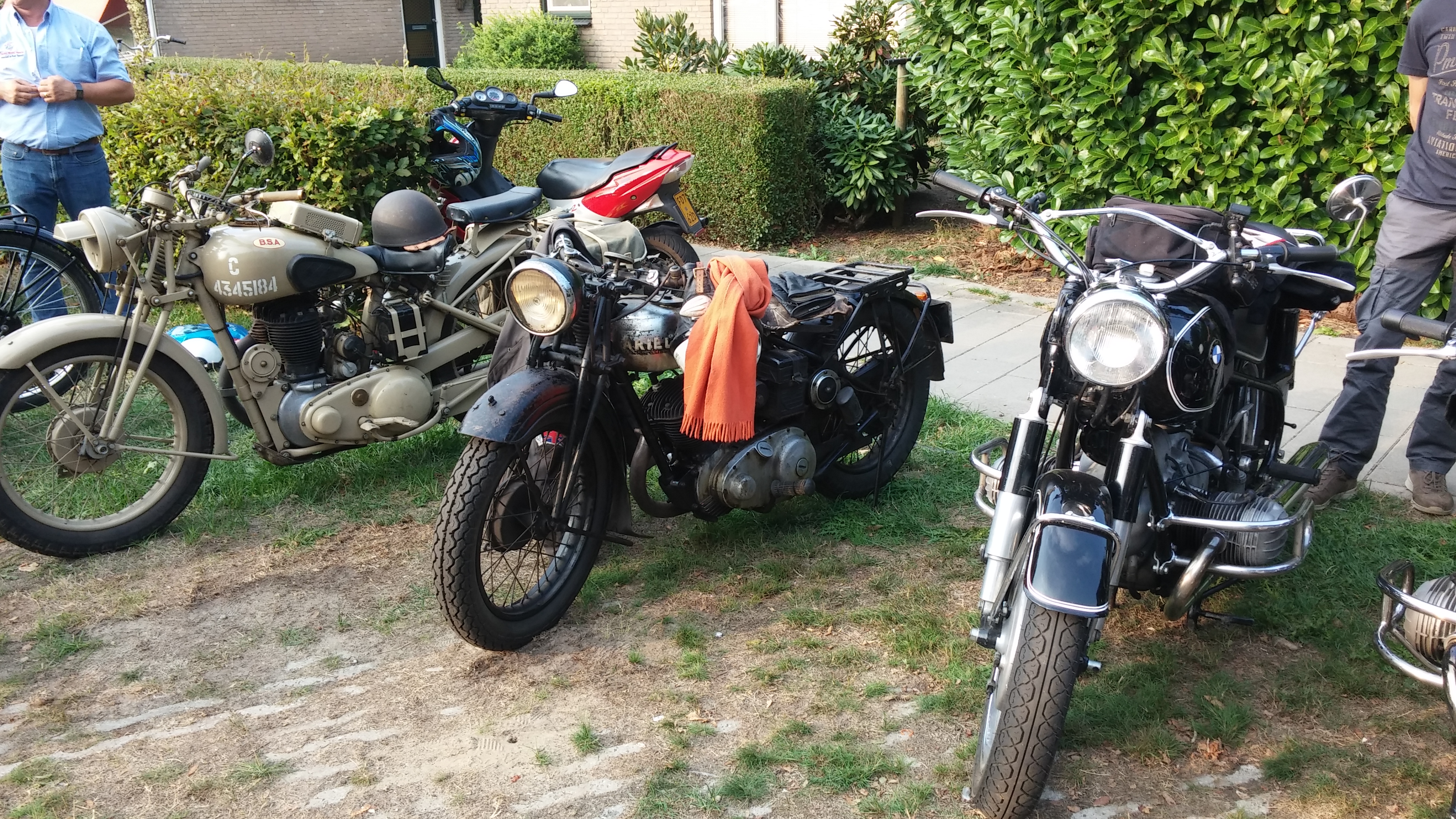 v.l.n.r. BSA, Ariel en een BMW