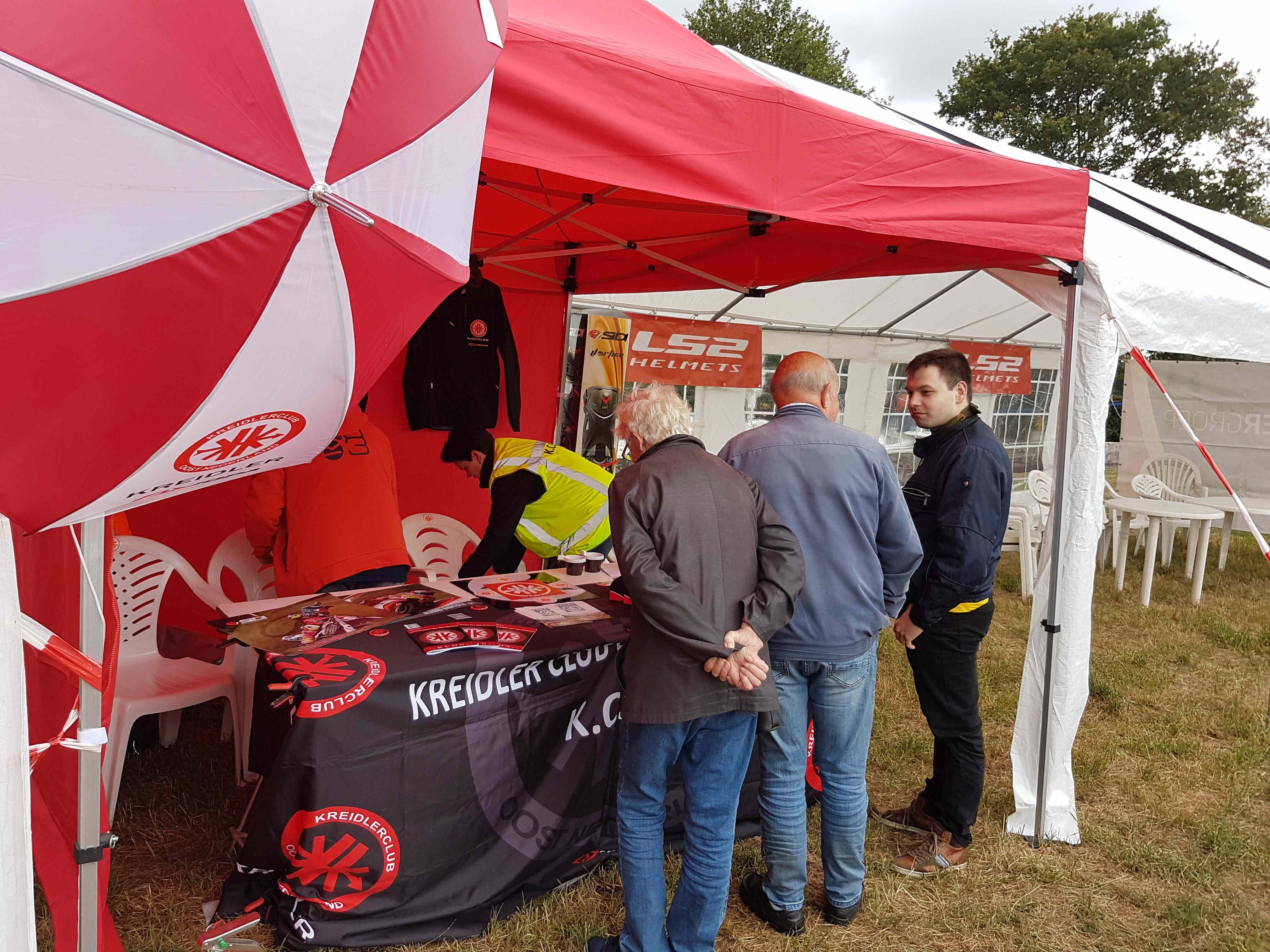 Zondag 7 juli was het weer zover: het internationale bromfietstreffen van onze club. Dit jaar voor de 29e keer. De voorbereidingen werden zaterdag 6 juli getroffen met behulp van vrijwilligers. Dat voorbereiden bestaat o.m. uit het belijnen van het terrein met lint, het opzetten van tenten voor de binnenkomst, muziek en inschrijving en het uitzetten van de route. Voor de route wordt systeem van vierkantje, pijltje, rondje toegepast. Hierbij is het vierkantje linksaf, het pijltje spreekt voor zich: de aangegeven richting volgen en het rondje rechtsaf. (Ezelsbruggetje: Rondje Rechts). Toch zijn er altijd nog mensen die er in het begin niets van snappen. Het mooie van dit systeem is dat je de route met een groep maar ook alleen kunt rijden. Omdat vorig jaar de indeling van het terrein goed is bevallen, was het ook nu weer op dezelfde manier ingedeeld. Ook het weer was goed, weliswaar bewolkt maar met 15-20 graden was het goed te doen. Overigens viel er geloof ik toch nog een klein buitje. Ons clublid Harry Markerink was de organisator van een stand met als thema Kreidler Mustang. Langzamerhand werd het drukker, ook op de onderdelenmarkt.Er waren 14 handelaren en er was weer van alles te koop. Veel onderdelen maar ook complete brommers wisselden van eigenaar. Ondertussen heb ik een paar rondjes gemaakt tussen de bromfietsen door en zo hier en daar een plaatje geschoten van de brommers en motoren. Uiteindelijk waren er 199 deelnemers. Om ongeveer 11.45 uur gaf onze voorzitter het startsein en kon iedereen op eigen gelegenheid aan de toertocht beginnen. In grote lijnen verliep de rit door en of langs de volgende plaatsen/buurtschappen: Start op het terrein in Neede dan Lochuizen-Markvelde-Bentelerbeek-over het Twentekanaal -Ambt Delden-Enter-Elzen-Goor-Stokkum-Twentekanaal over-Diepenheim-Gelselaar-Twentekanaal over-Stokkum-weer Twentekanaal over-Nettelhorst-Gelselaar-Noorddijk-en dan naar Neede terug naar het terrein van het bromfietstreffen. De complete route staat aan het eind van dit verslag en kun je downloaden Om ongeveer half drie was ik weer terug op het terrein en heb ik de bonnen ingeleverd voor een warme hap en aandenken. Dit jaar een vaantje. We kijken uit naar volgend jaar 5 juli het treffen wordt dan voor de 30e keer georganiseerd.