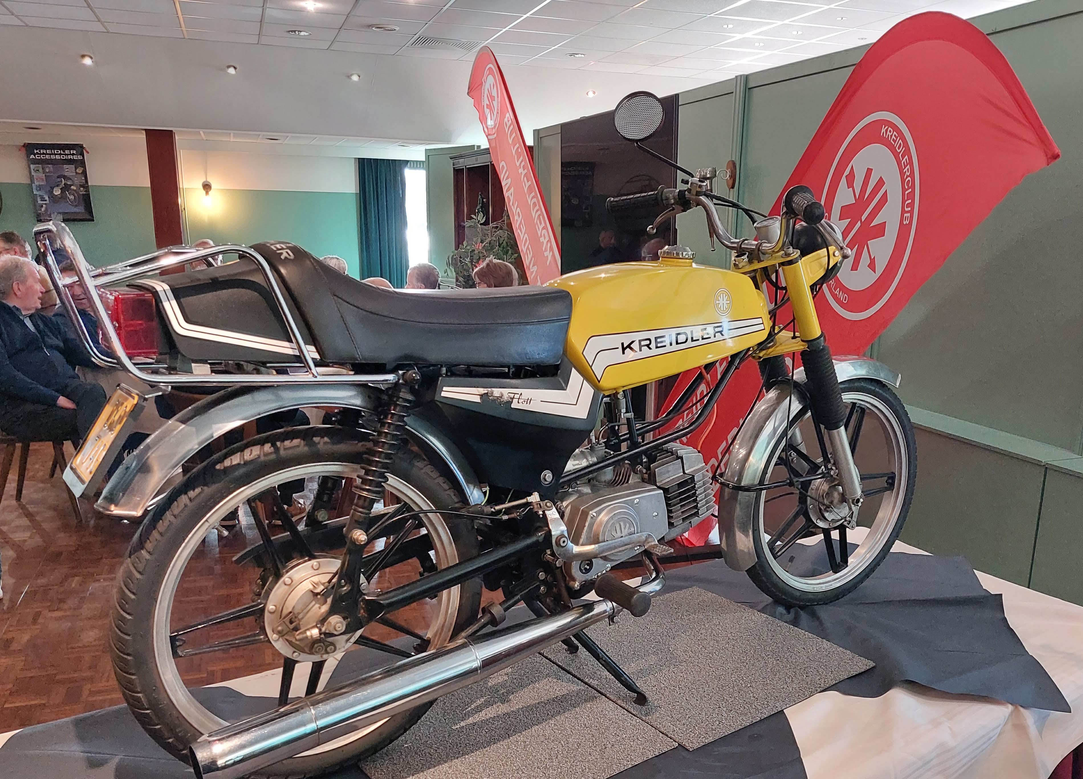 De zaal was zoals altijd weer knus ingericht met op verschillende plaatsen een mooie Kreidler.