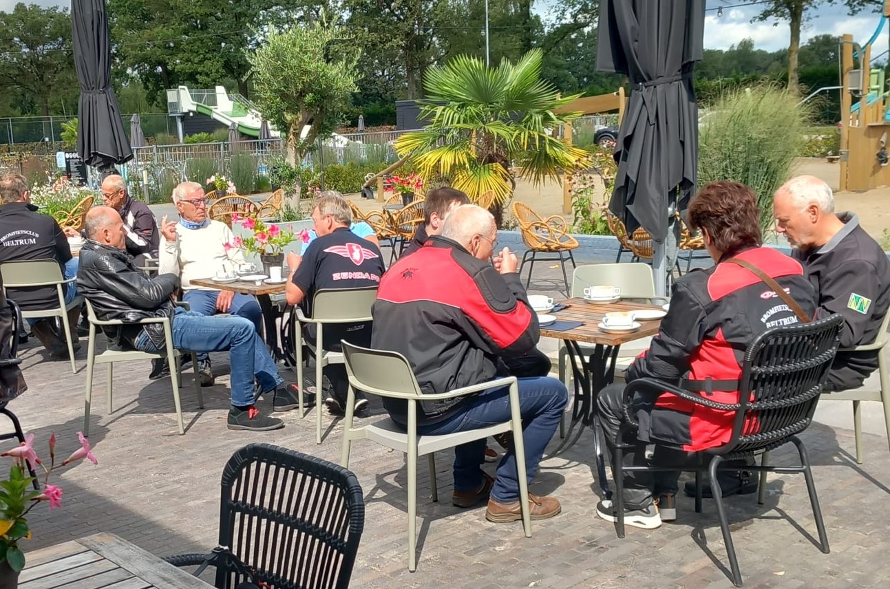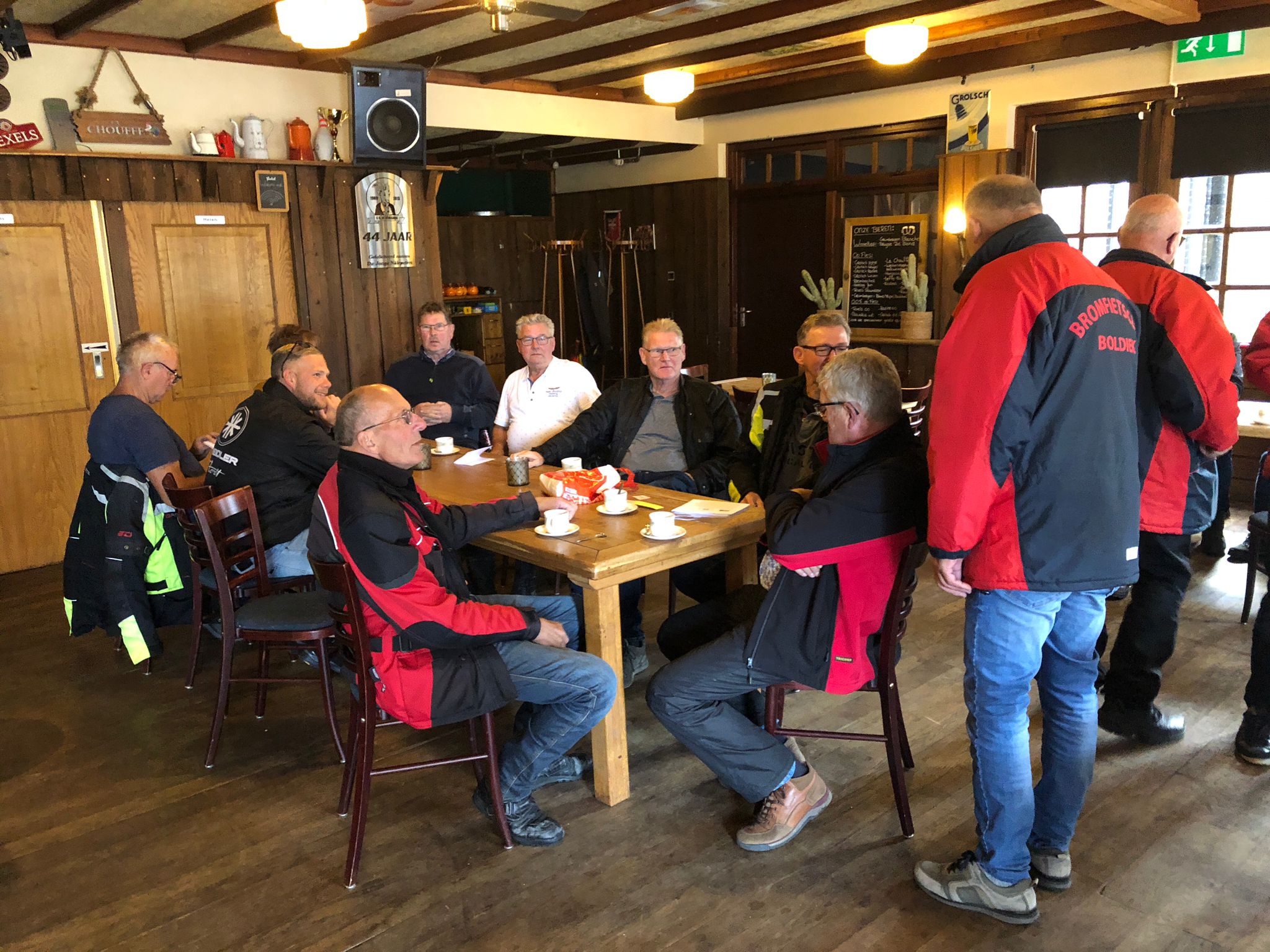 Um 11.00 stonden de kearls van ,,Boldiek ,, al op ,,Pol Posision,, achter veurrieder Werner. Zee hadden der zin in dat was duudelijk. Ook de 2de groep met veurrieder Willie stond al te roken veur de karke. Met prachtig weer en n tank vol benzine ging t effen deur ons mooie Vroagender en doorno richting Bredevoort. Toen slingerde t richting ,,de Hoart,, t Woold en Achter Woold richting Kotten noar camping ,,de Italiaanse meertjes,, Hier stond de tomatensoep en de breudjes klaor.