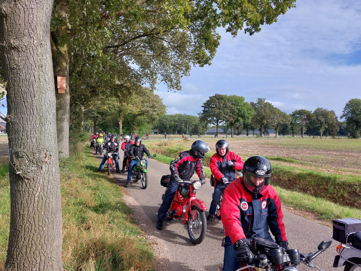 Peter Schoenmakers sloot de rij als achter rijder om met eventuele pechgevallen of ander oponthoud naar voren te kunnen rijden om de stoet te stoppen. De rit verliep ongeveer als volgt: Start dus bij de Olde Mölle, Geesteren (GLD), Gelselaar en dan het Twente kanaal over. Het Twentekanaal begint bij de IJssel ten noorden van Zutphen bij het dorp Eefde en loopt langs de plaatsen Almen, Lochem, Goor, Delden en Hengelo naar Enschede. De loop van het kanaal is vrijwel parallel aan die van de spoorlijn Zutphen-Glanerbrug. Tussen Delden en Goor loopt er een zijtak naar Almelo. Van het kanaal reden we via Markelo en Harfsen, naar het gehuchtje T ’Joppe dat vernoemd is naar het Landgoed T ‘Joppe. In T ‘Joppe zelf staat een prachtig klein kerkje. Helaas wordt dit kerkje in 2025 net als vele andere kerken gesloten. Van T ‘Joppe reden we naar Gorssel.