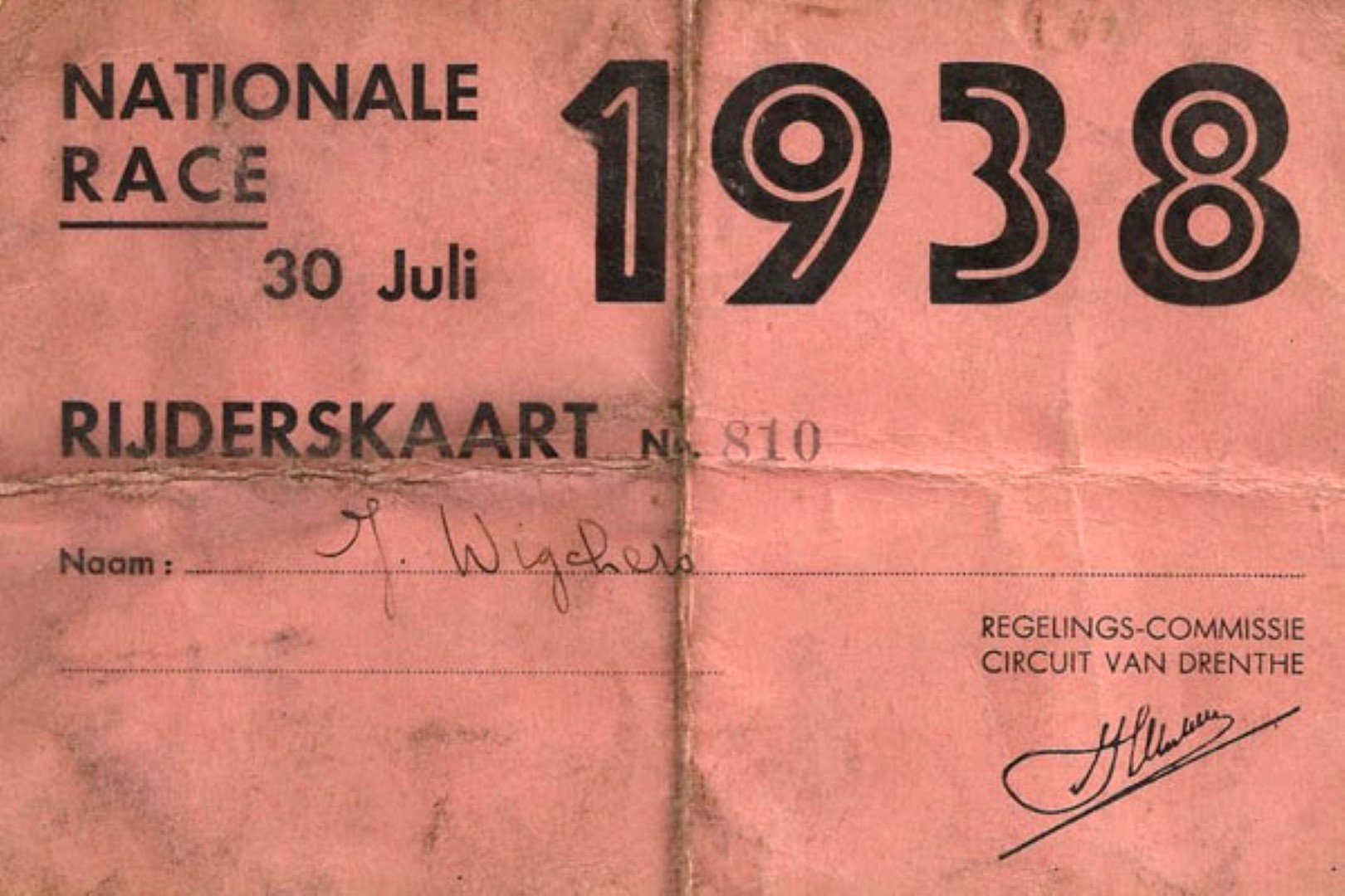 Er hangt in het museum nog een originele plaat uit die jaren van de TT waar op staat waar je kaartjes kon kopen. Ook heeft Louwrens nog een TT startbewijs van zijn vader. (Zie afbeelding hier onder.)