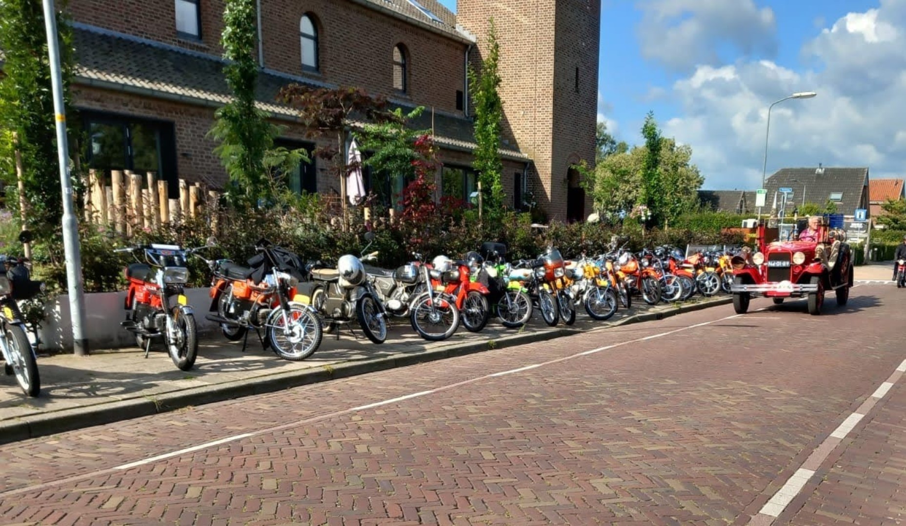 Brommerrit KCON Vragender. Zondag 25-08-2024 Dit verslagje van de tweede tourrit in Vragender toch maar in het Nederlands want bij de vorige editie is Harm Olde Bijvank waarschijnlijk een halve dag bezig geweest om mijn gebrabbel van het dialect naar het Nederlands te vertalen. Om 10.00 uur werd het al onrustig rondom de kerk in ons mooie dorp. De organisatie was druk doende om de brommers netjes in de rij op te stellen aan de boulevard.