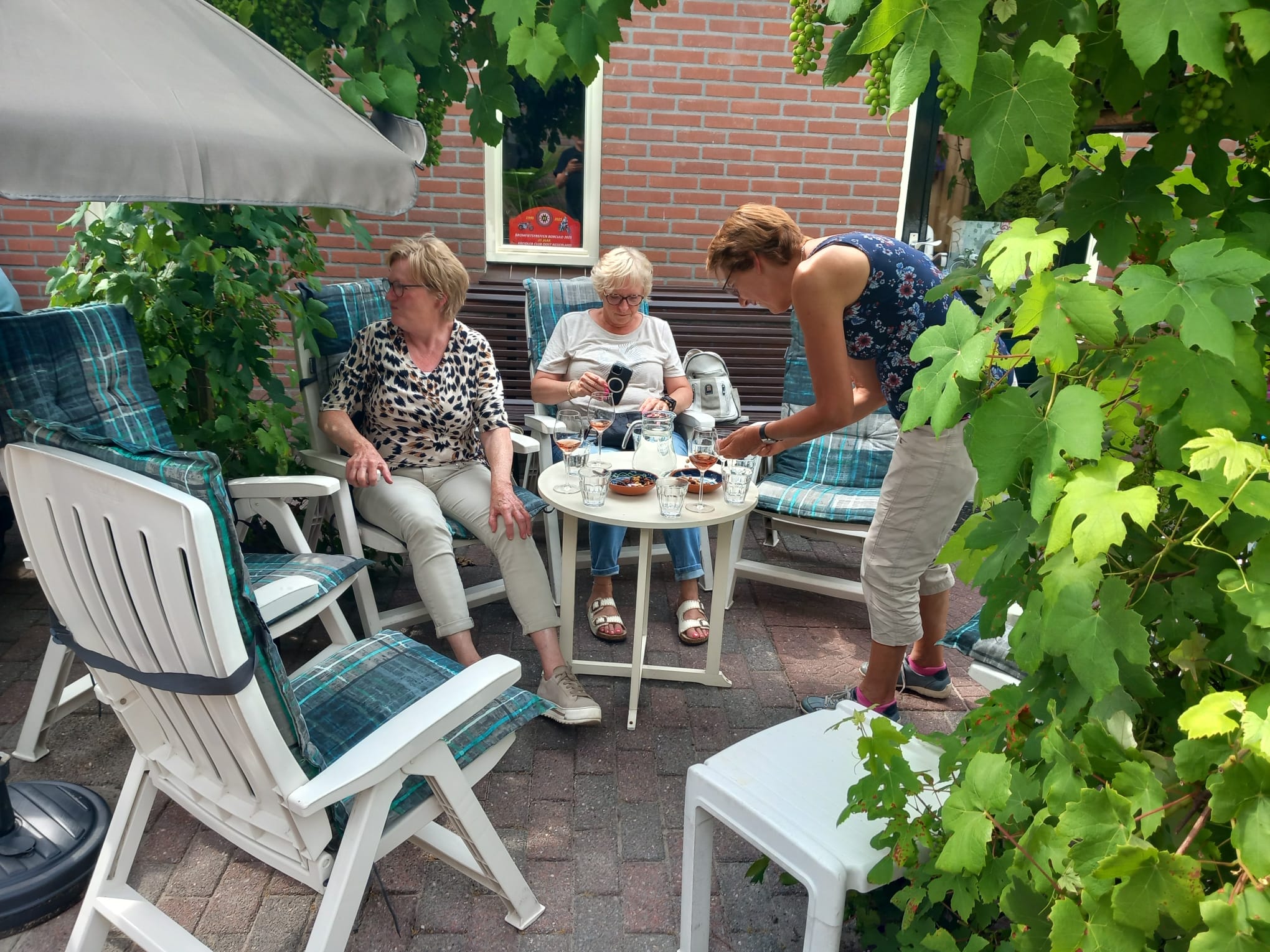 Bij de familie Meijer achter het huis stond voor iedereen heerlijke soep met brood, salade, en hapjes met alcohol vrij bier en frisdrank klaar. Ze hadden daar weer veel tijd en ,moeite ingestoken, en daarom hadden we besloten om even met de pet rond te gaan bij iedereen, om als blijk van waardering een financiële bijdrage te doen. Ieder was het daar mee eens en gaf gul. Dat was het ook dubbele en dwars waard.