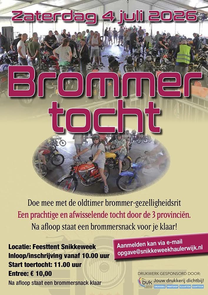 Op 5 juli vindt ons jaarlijkse Bromfietstreffen weer plaats. We proberen dit jaar nog meer deze dag te promoten, om er een mooie, druk bezochte dag van te maken.