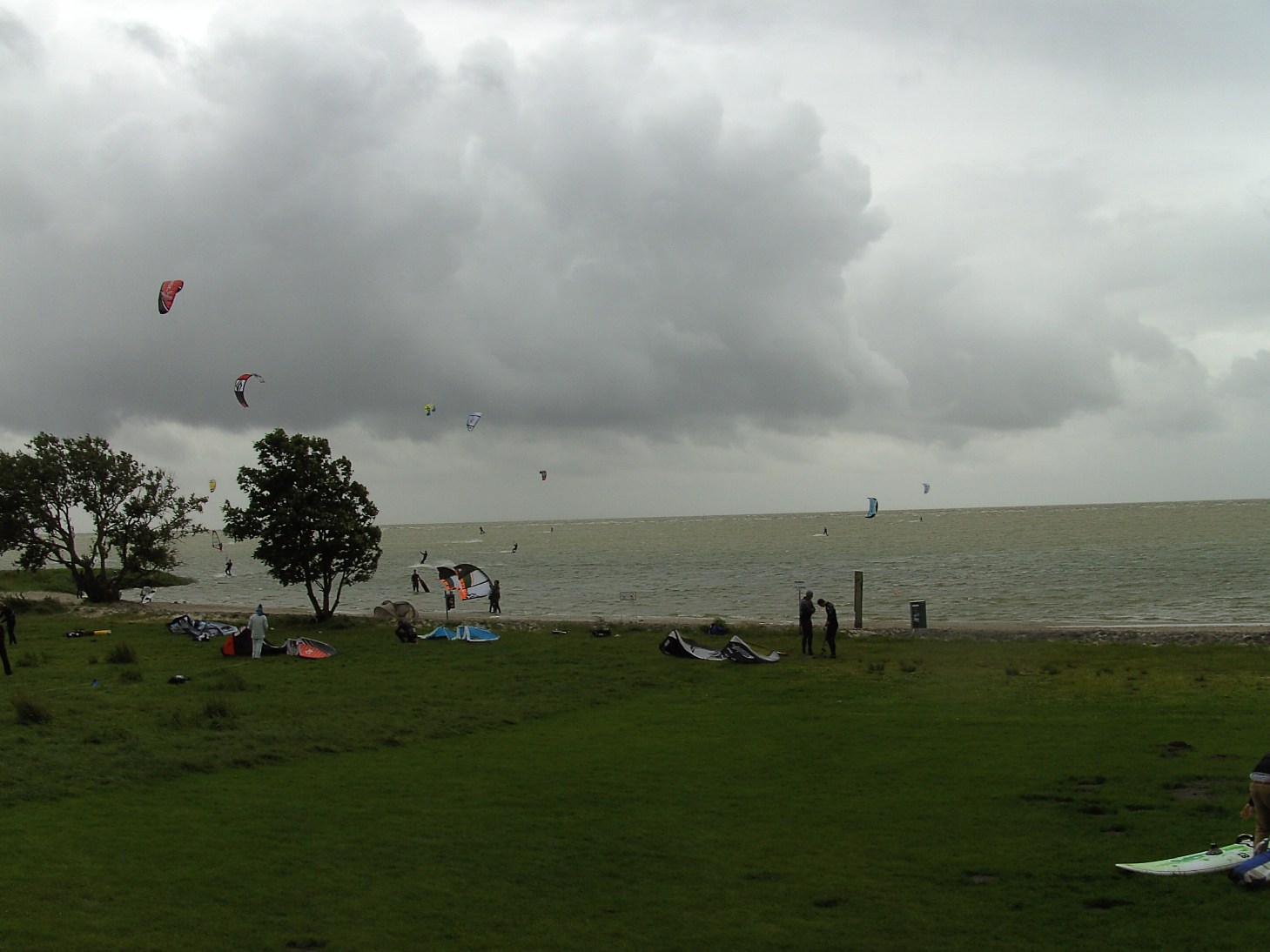 Dat kwam niet alleen door de rit van Vroem maar mede door vele (kite) surfers. (Op een kleine surfplank met behulp van een soort parachute/vlieger en de wind je voort te bewegen over het water) Deze mensen hadden wat de wind betreft het mooiste weer wat ze zich maar kunnen wensen: veel wind ! Mooi om naar te kijken.