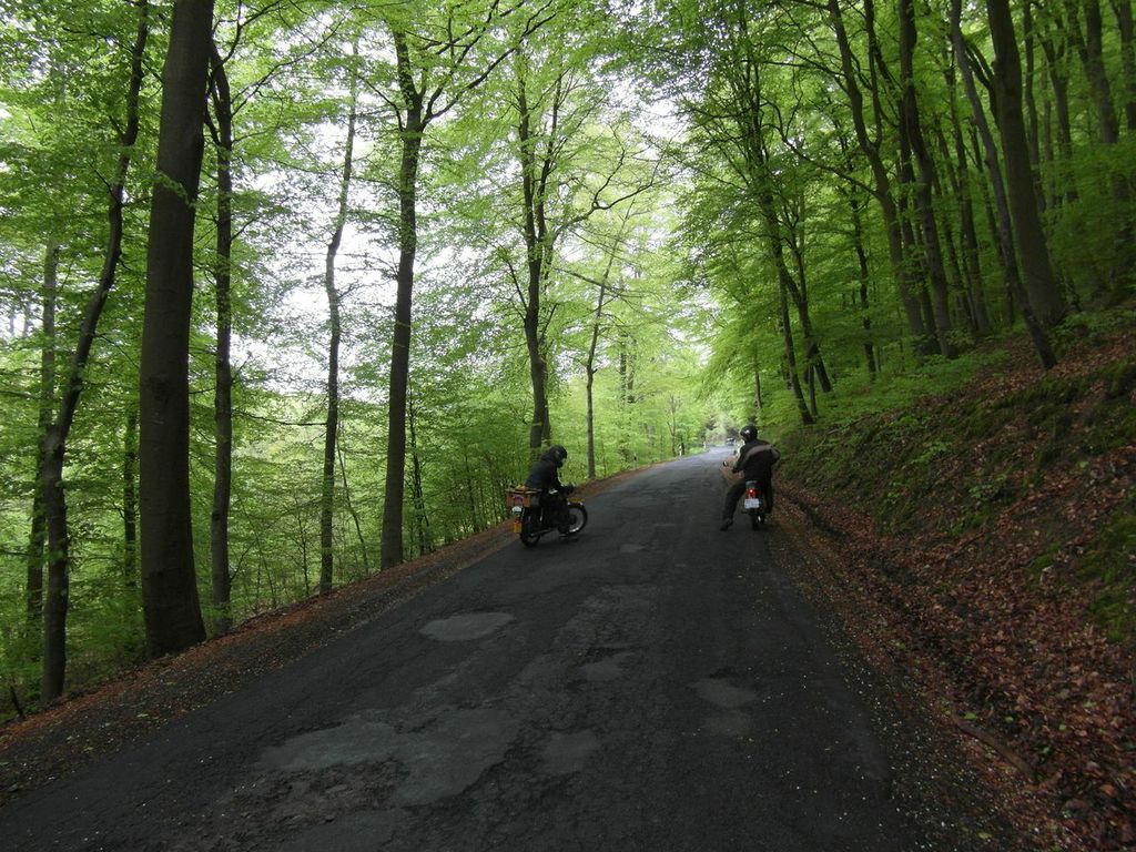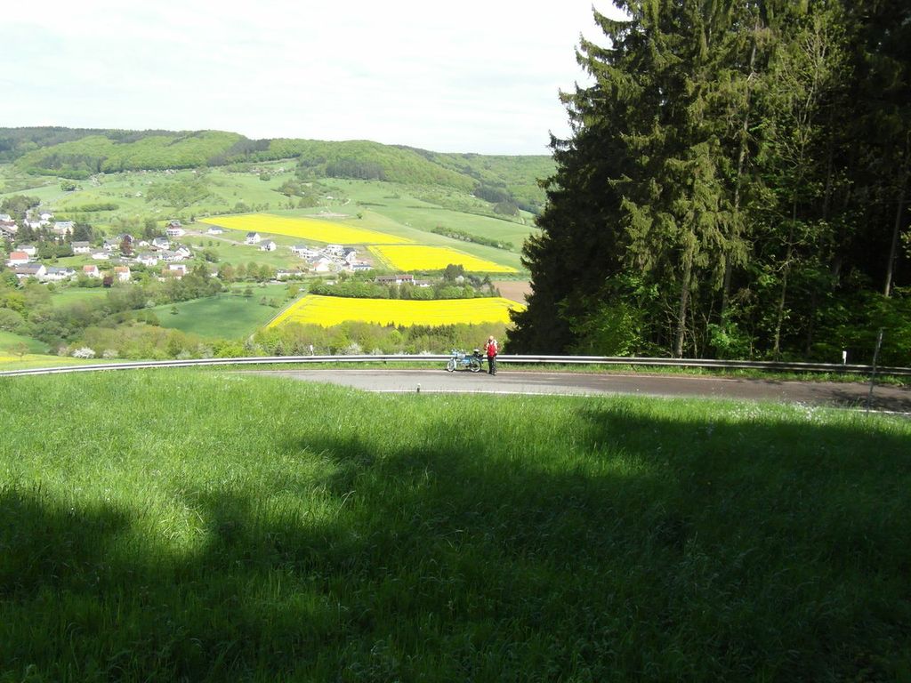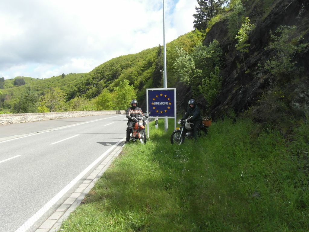 Gelukkig werd het snel prachtig weer en hebben we een half uurtje een bakkie gedaan ‘Bei Anni’. De eigenaresse wist niet wat ze meemaakte: binnen een half uur de hele weekopbrengst in een keer bij elkaar! Wij hebben onze weg weer vervolgd, door de –in mijn ogen- schitterende omgeving. Gigantische hoogteverschillen in het landschap. Helaas had Wims Kreidler Winner het bergopwaarts niet naar zijn zin. Dit gold ook voor de Luxemburgse Eitank Super 5