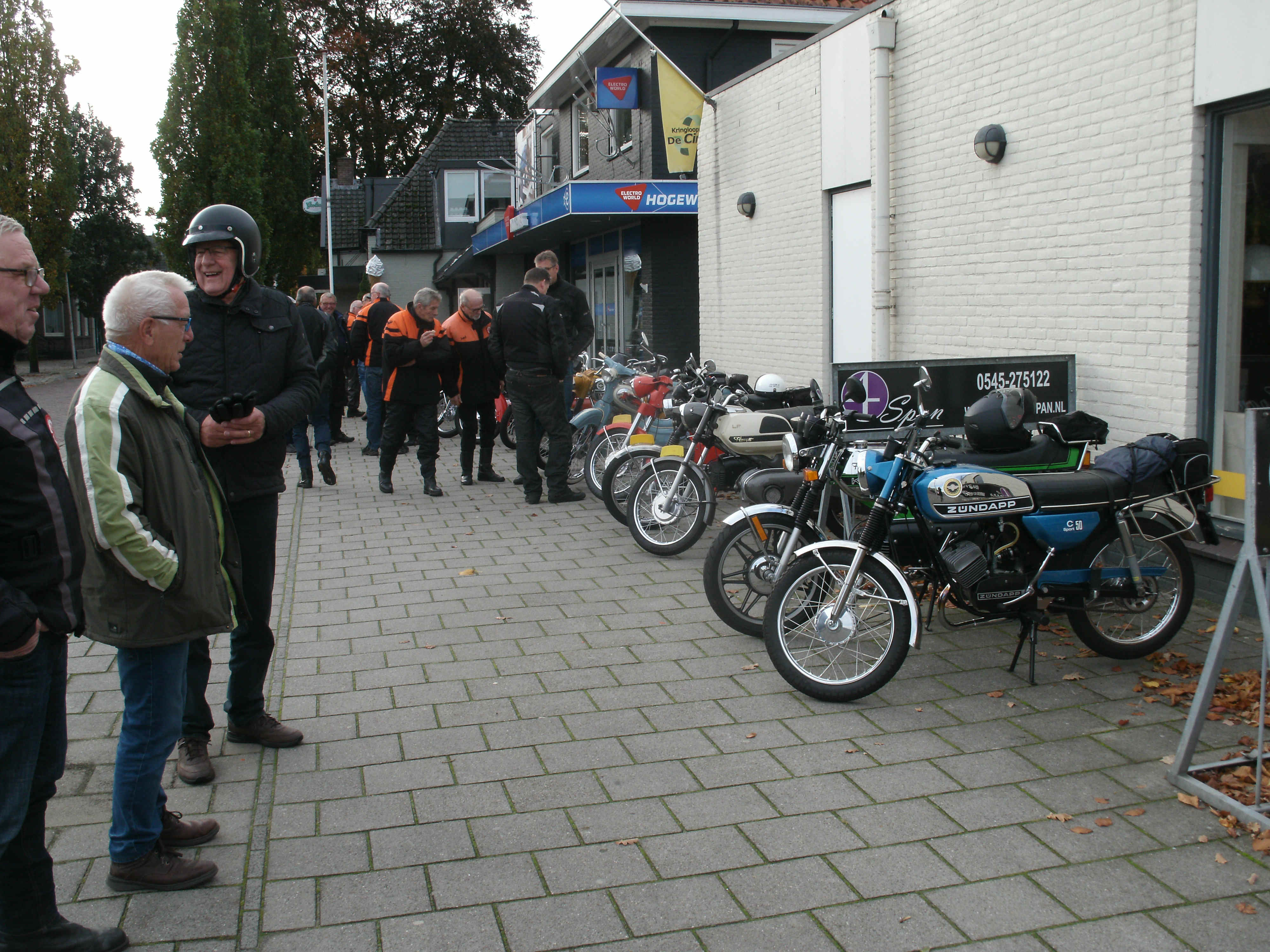 Bij het ‘t Vierspan aangekomen was het al lekker druk en tegen 11 uur zijn we met ongeveer 35 bromfietsen van start gegaan.