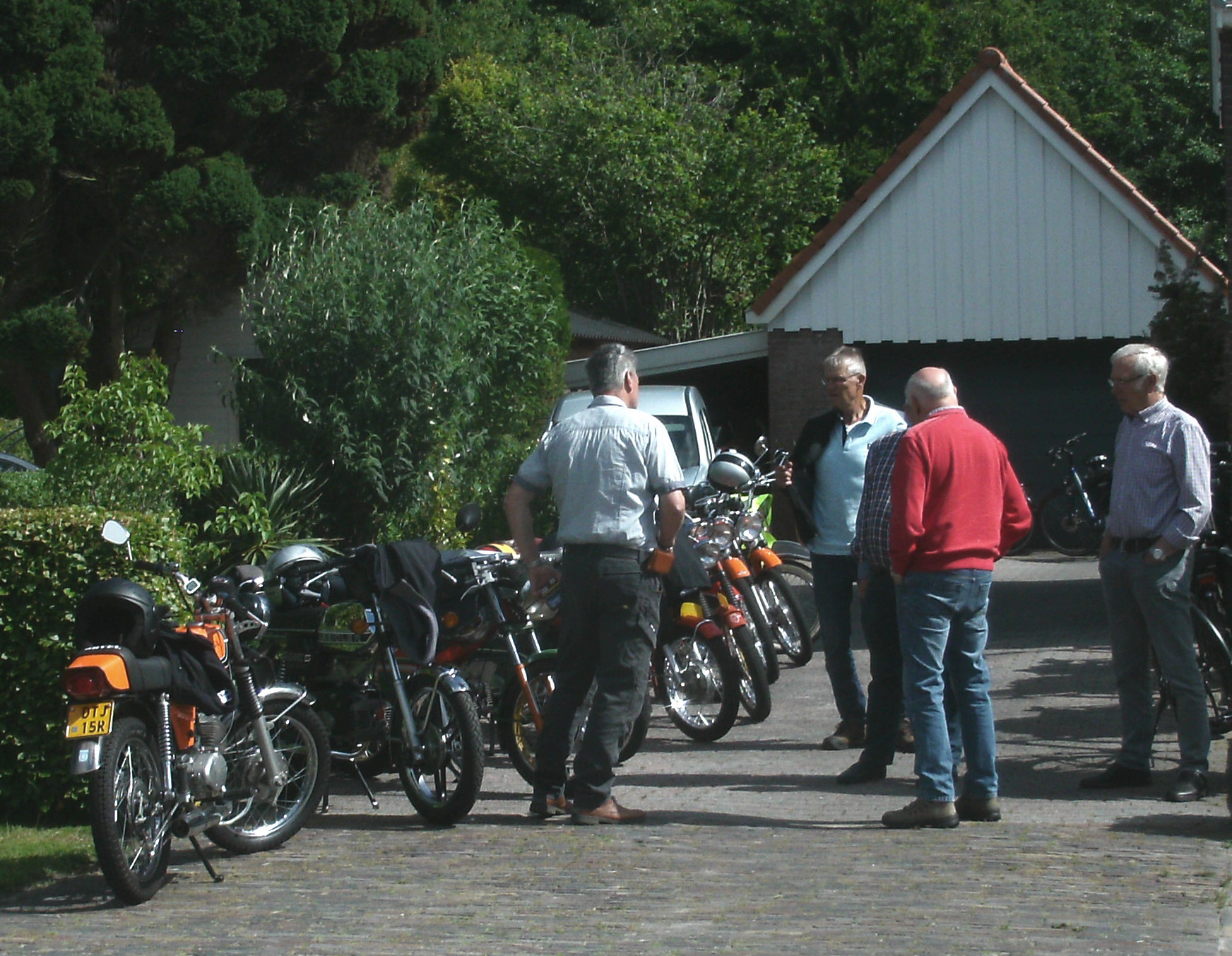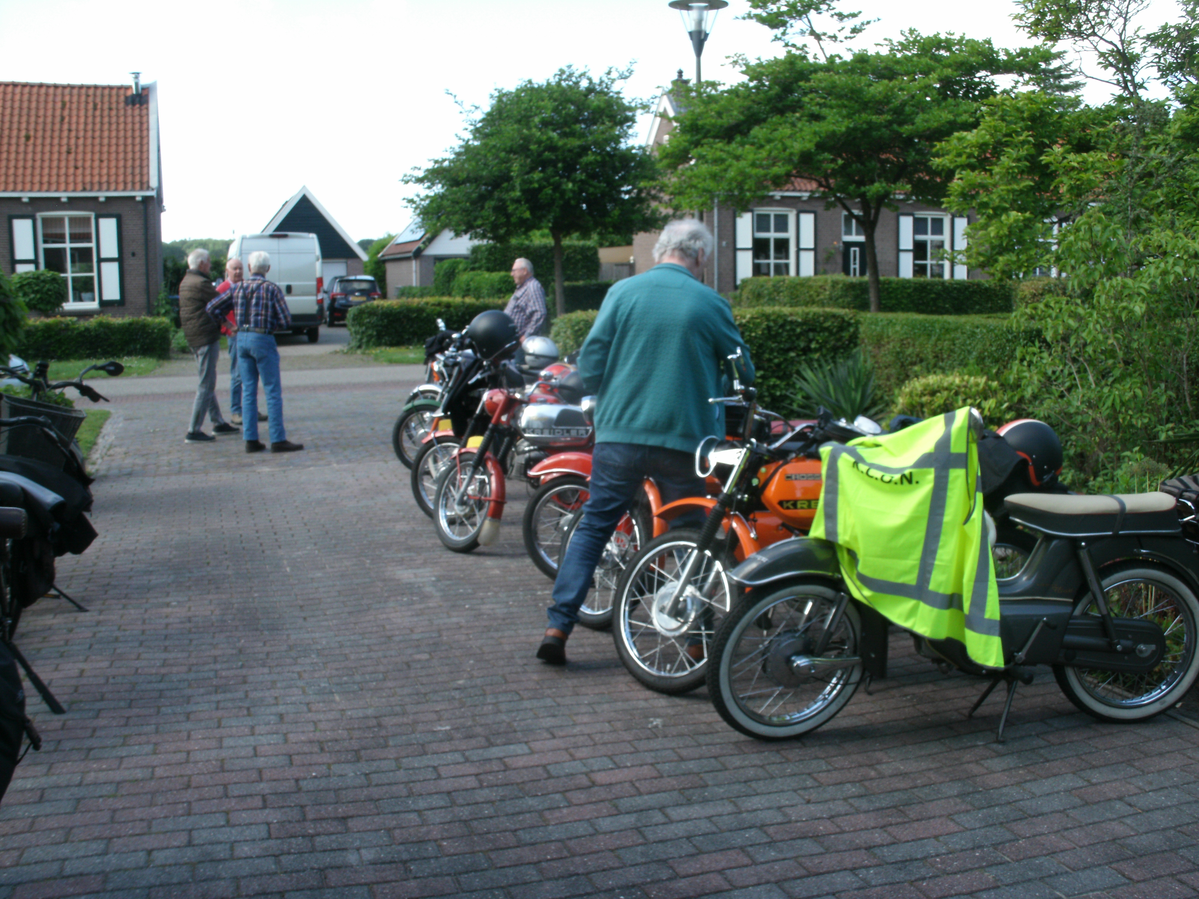 In Veenhuizen aangekomen was het al een gezellige boel want de koffie en thee met koek en cake stond al klaar en de meeste van de 15 rijders en 11 fietsers waren er al.