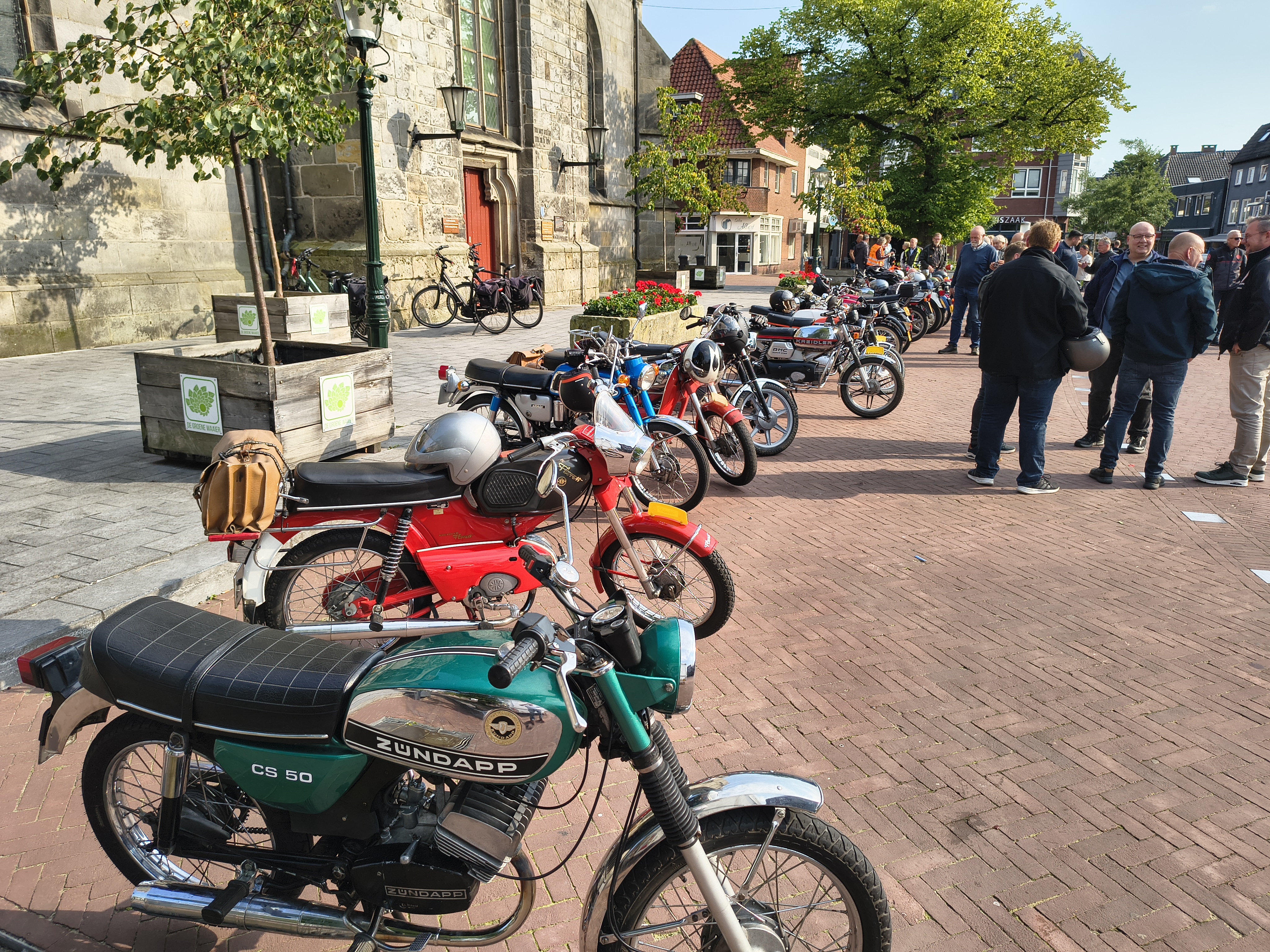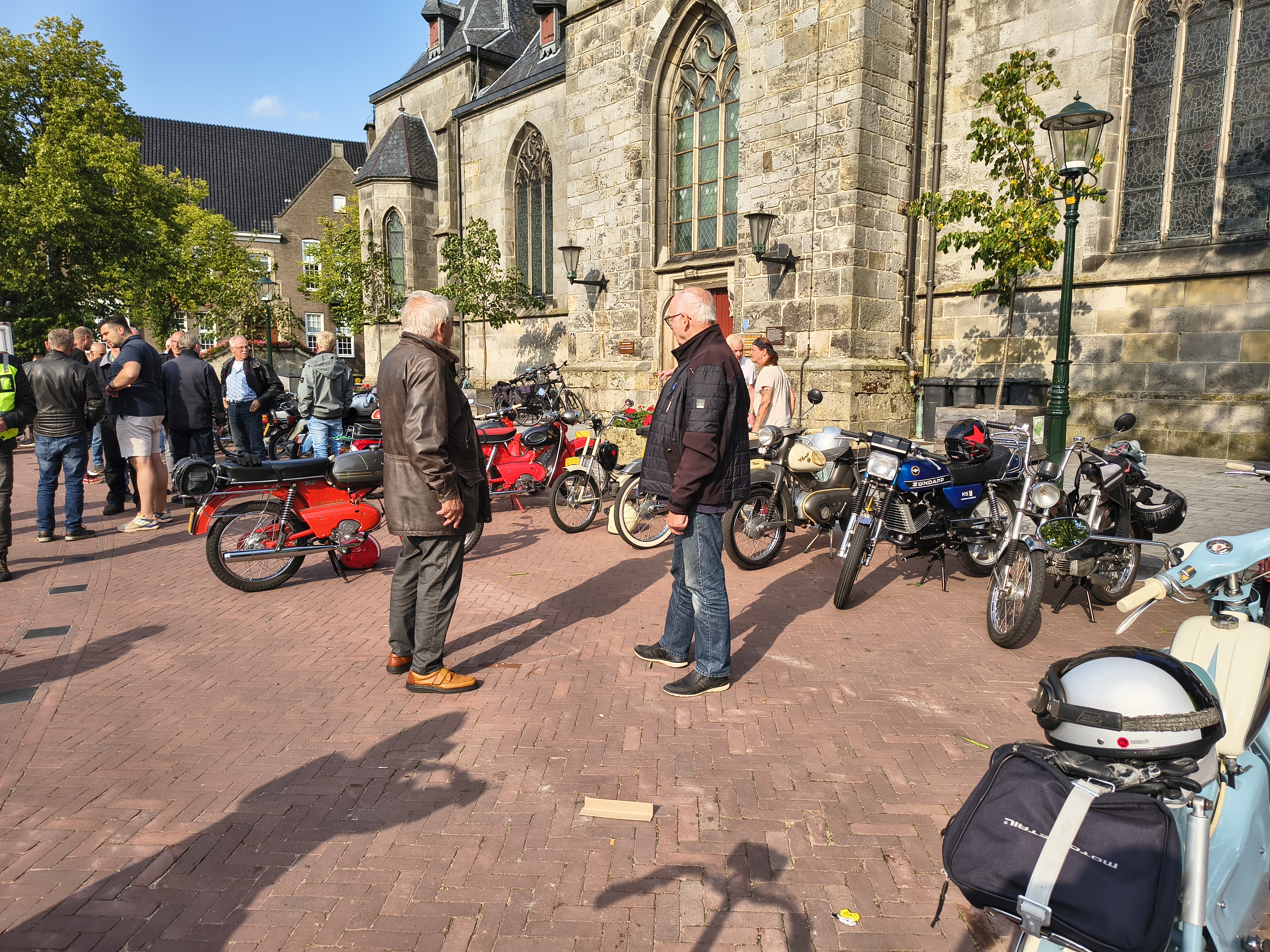 Via de grensovergang bij Oldenkotte, zijn wij Nederland weer ingekomen en terug gereden naar het marktplein en de Pancratius in Haaksbergen. Het weer was nog steeds zeer aangenaam, waardoor de deelnemers toch nog wel even zijn blijven plakken. Er werd weer volop bijgepraat over allerhande technische en niet-technische zaken. De avondrit was leuk en gezellig, waarvoor dank aan alle deelnemers.