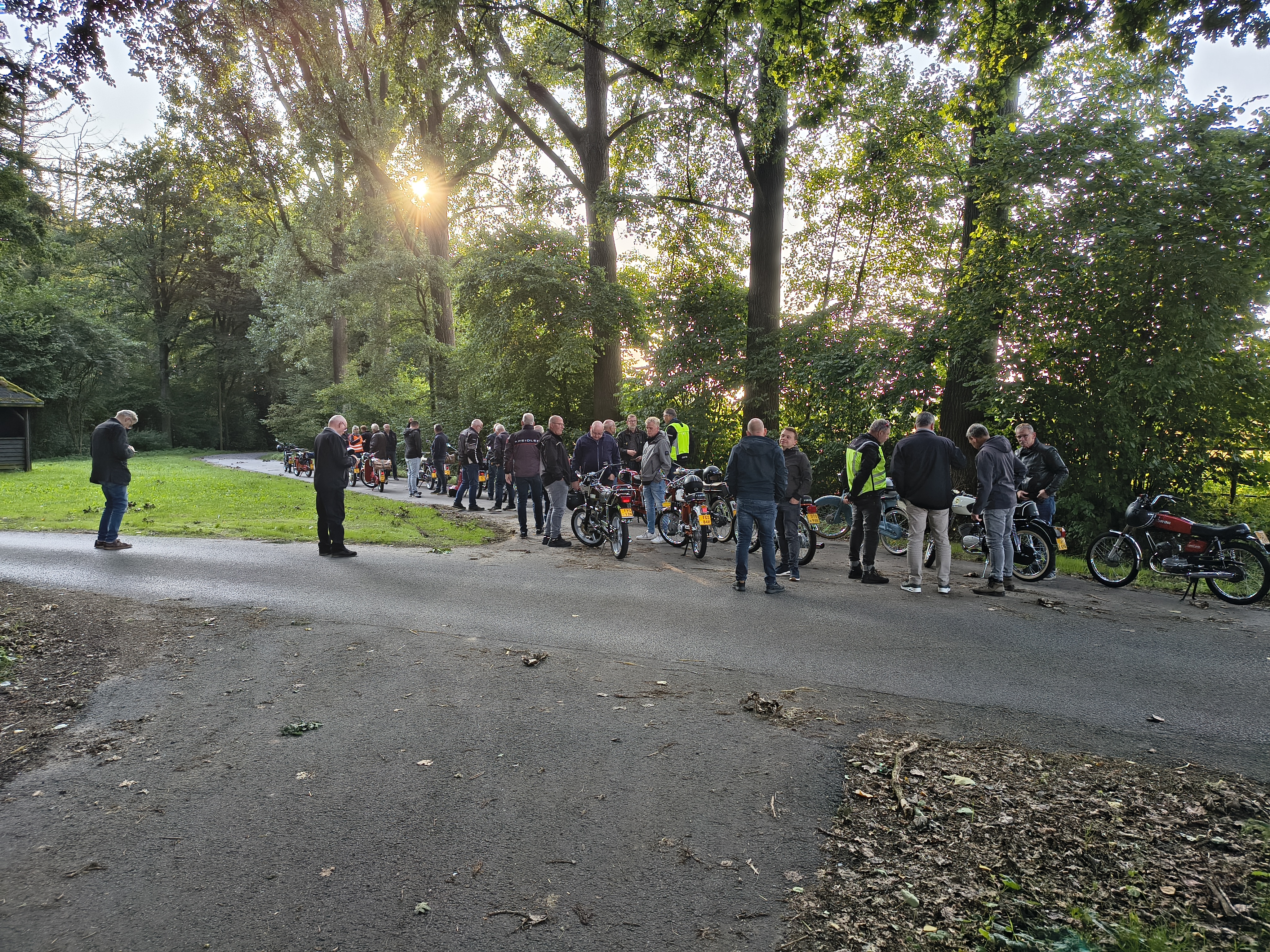 De 3e Pancratius-avondrit is natuurlijk ook weer vanaf deze plaats van start gegaan. Omdat wij wat later in het jaar zijn dan bij de voorgaande ritten, zijn wij wat vroeger vertrokken. De koffie en thee met koek stond klaar vanaf 17:30 uur, mede door toedoen van Nico en Rita, waarvoor dank. Het was al gelijk een gezellige drukte met veel KCON’ers die wel zin hadden aan ritje met dit fraaie weer.
