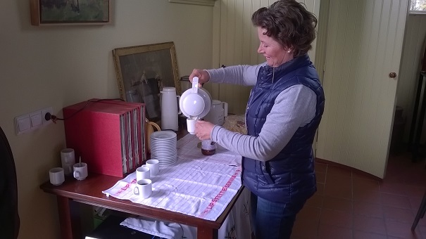 De Heimatrit was georganiseerd door Jacqueline en Harry Markerink, met hulp van hun zoon en Henk Hendriks. Het startpunt was het Zwieps Lokaal, een buurtgebouw, een kerkje(?), vergaderzaaltje, te huur voor een feestje; hoe dan ook een erg leuke plek als startpunt van een toerrit. Jacqueline heeft ons ontvangen met koffie en cake, allemaal prima voor elkaar.