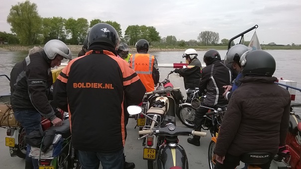 Het weer was prima (ondanks de verwachtingen) en de omgeving was zelfs nog fraaier dan het weer; prachtige bossen, lanen en landgoederen. Via Bronckhorts en Steenderen zijn wij gereden tot aan de rivier de IJssel. Met het pontje (€ 1 pp) hebben wij over kunnen steken naar de andere oever van de IJssel, blijft toch altijd leuk voor zandhazen die wij zijn.