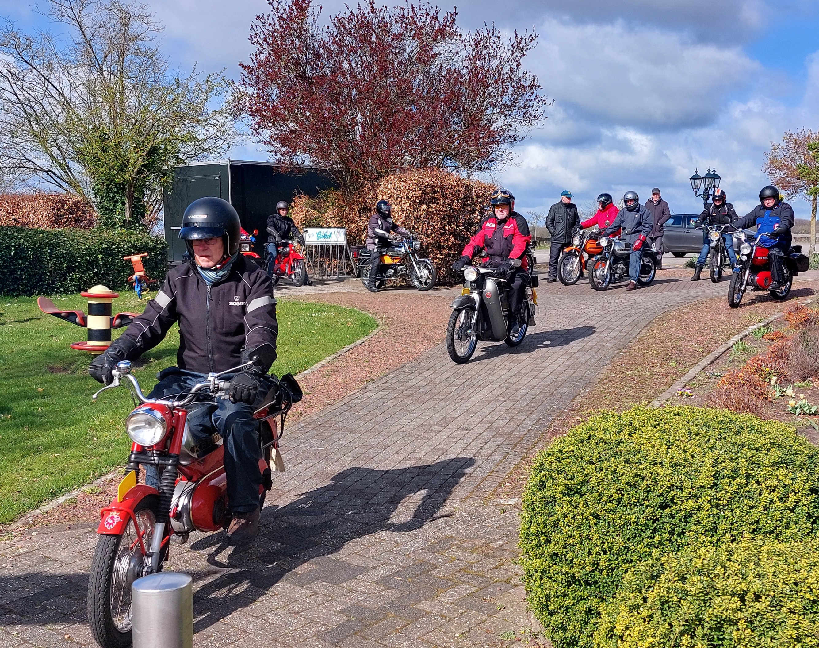 Tomos en een Puch gebroederlijk naast elkaar. Verder was het geheel aangekleed met