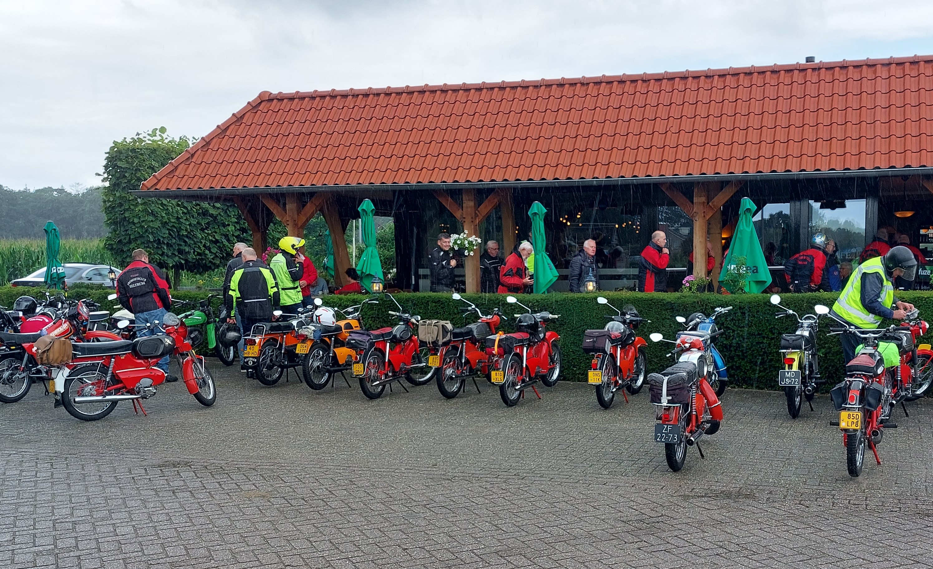 Dit café is bekend van de band Normaal. Het was jarenlang hun stamkroeg en menig idee voor een høkers idee werd aan de stamtafel van Normaal geboren. Toen ik om ongeveer 10.15 uur aankwam, had ik er vanuit Nijverdal al 55 km opzitten en was niet de eerste. Uiteindelijk waren we met ongeveer 20 brommers. (Ik weet het niet precies meer).