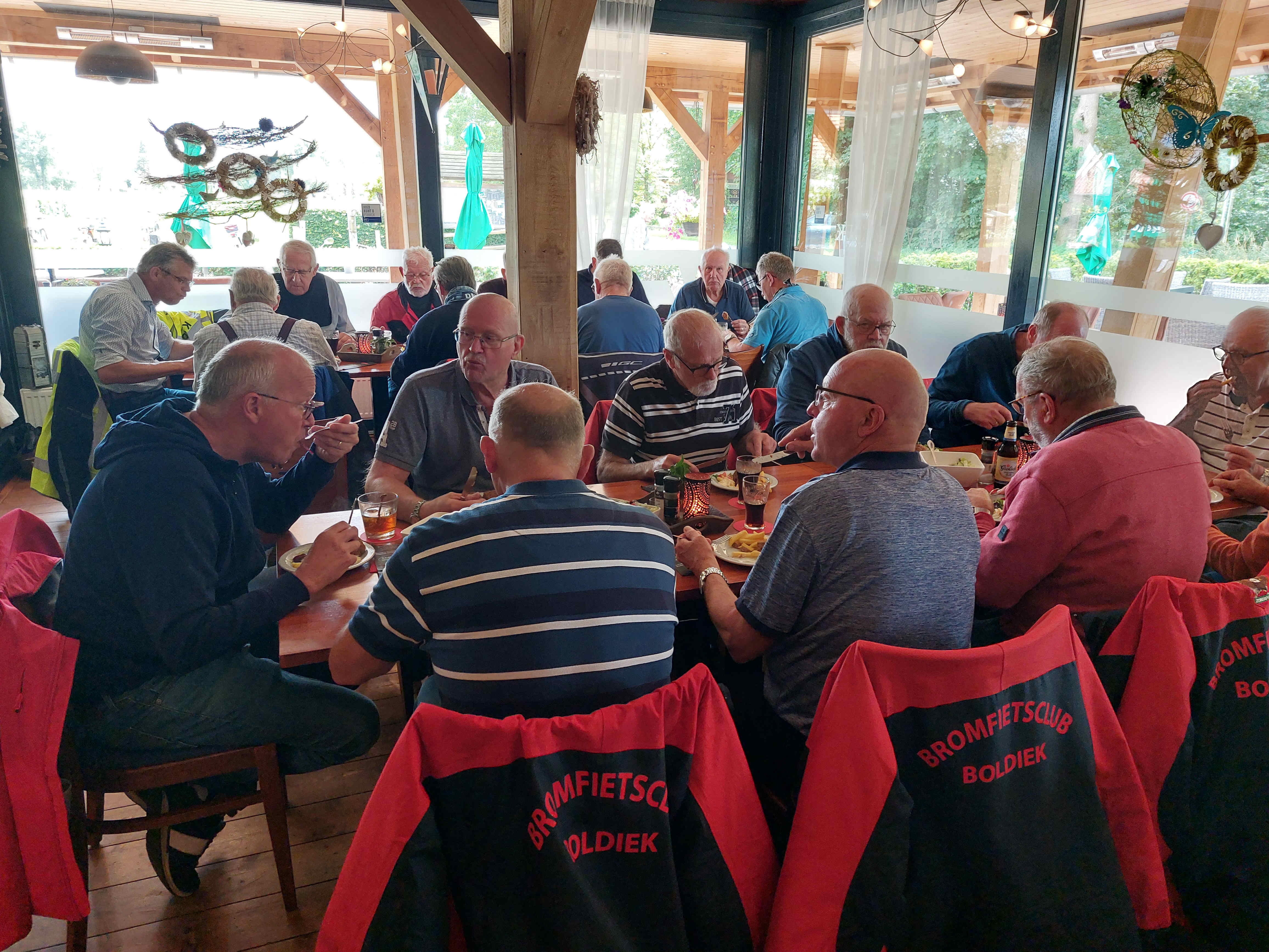 Gelukkig bleef het bij die ene bui. Bij de Veldhoek hebben we een bord patat met een gehaktbal en groente gegeten en iets erbij te drinken. Frans had dat goed geregeld. Persoonlijk ben ik wel een liefhebber van een patatje. (Zonder mayo)