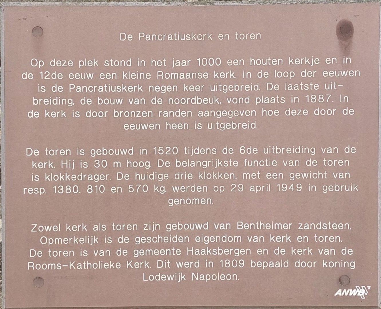 Vanaf het plein van deze kerk gaat de rit van start. Het schijnt dat Pancratius een martelaar was in de 3e en 4e eeuw na Christus. Op de plek waar nu de kerk staat, stond in het jaar 1000 een houten kerkje en in de 12 de eeuw een kleine Romaanse kerk.