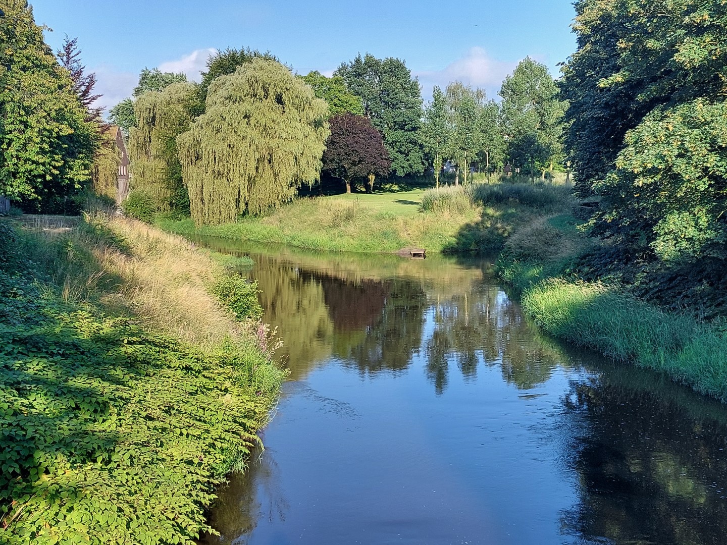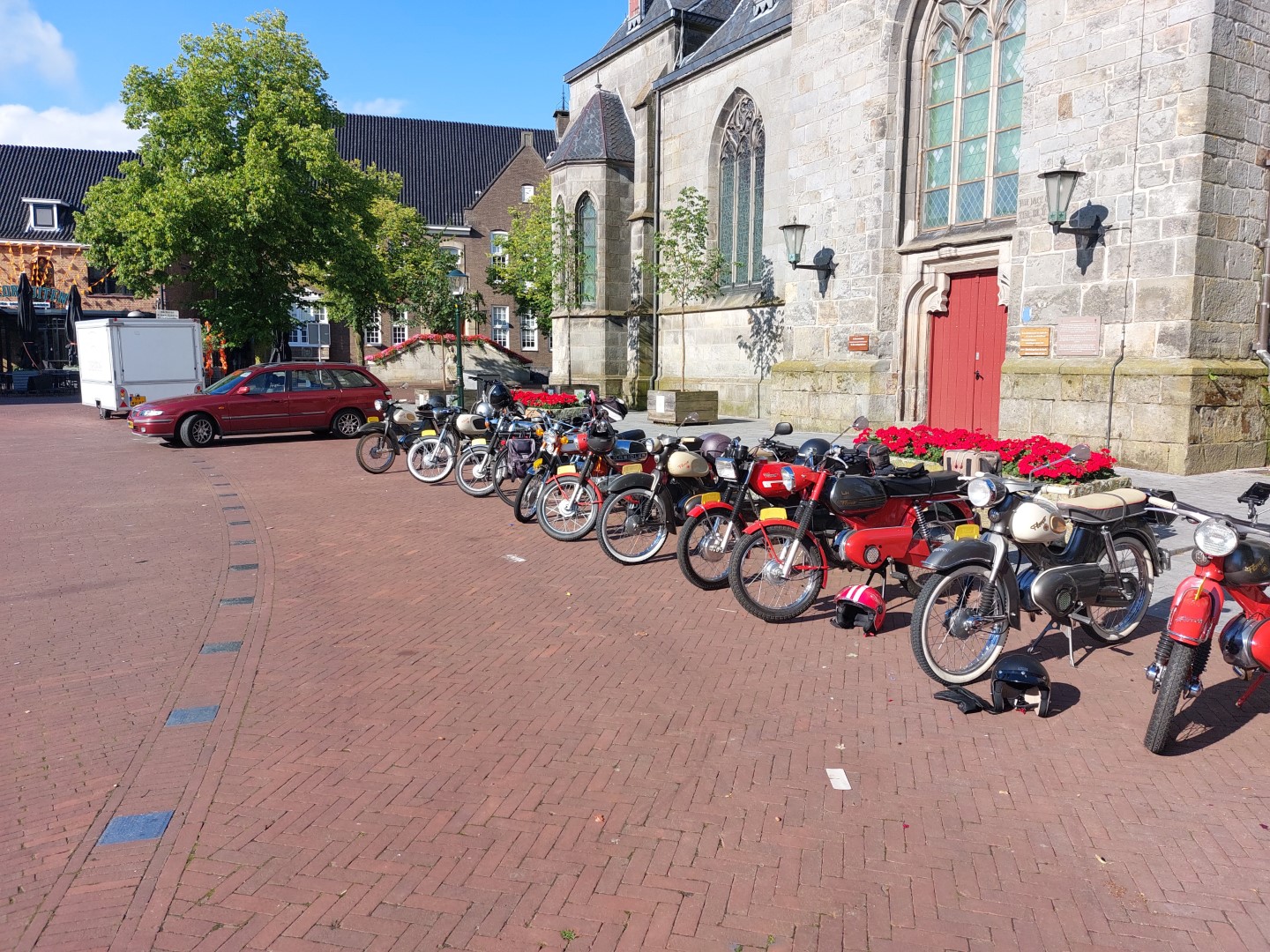 Het is een schitterend dorpspark waar het riviertje de Berkel door heen stroomt. Enkelen van ons kwamen nog aan de praat over onze brommers met een paar parkbezoekers. Door Han Ordelmans werden we nog op iets lekkers getrakteerd. We zij er zo’n drie kwartier gebleven en hebben toen onze brommers weer aangetrapt. We reden richting Oldenkotte.
