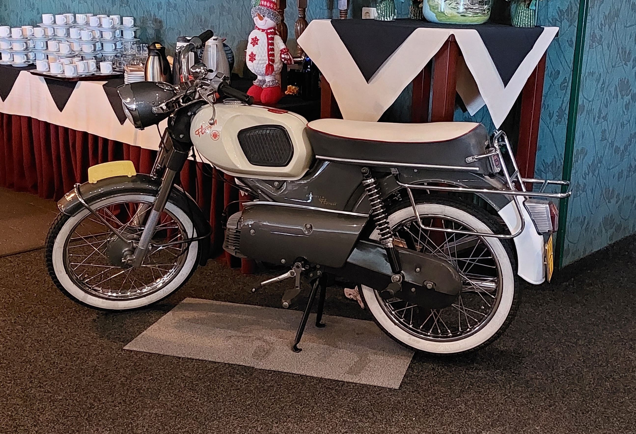 De zaal was zoals altijd weer knus ingericht met op verschillende plaatsen een mooie Kreidler.